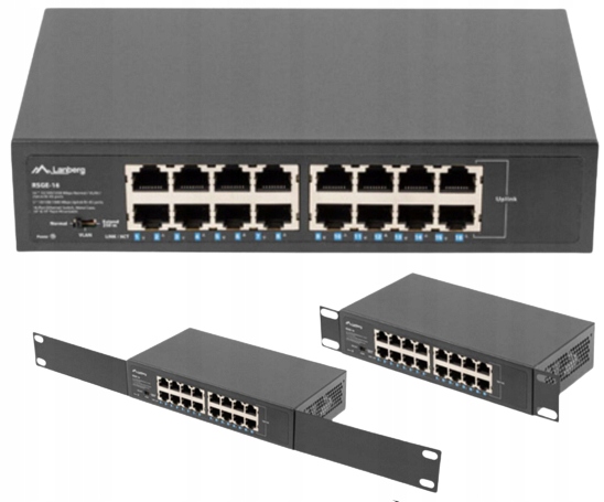 LANBERG RSGE-16 SWITCH 16X 1 ГБ НЕУПРАВЛЯЕМЫЙ ГИГАБИТ ДЛЯ 10- И 19-ДЮЙМОВЫХ ШКАФОВ