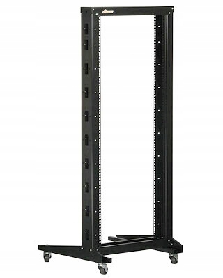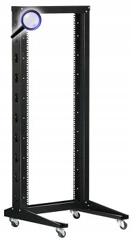Стойка позволяет устанавливать устройства в корпусах Rack 19"; Внутренняя высота: 29 U; Внутренняя ширина: 19"; Количество рельсов: 1; Черный цвет ; Движение: На включенных колесах;