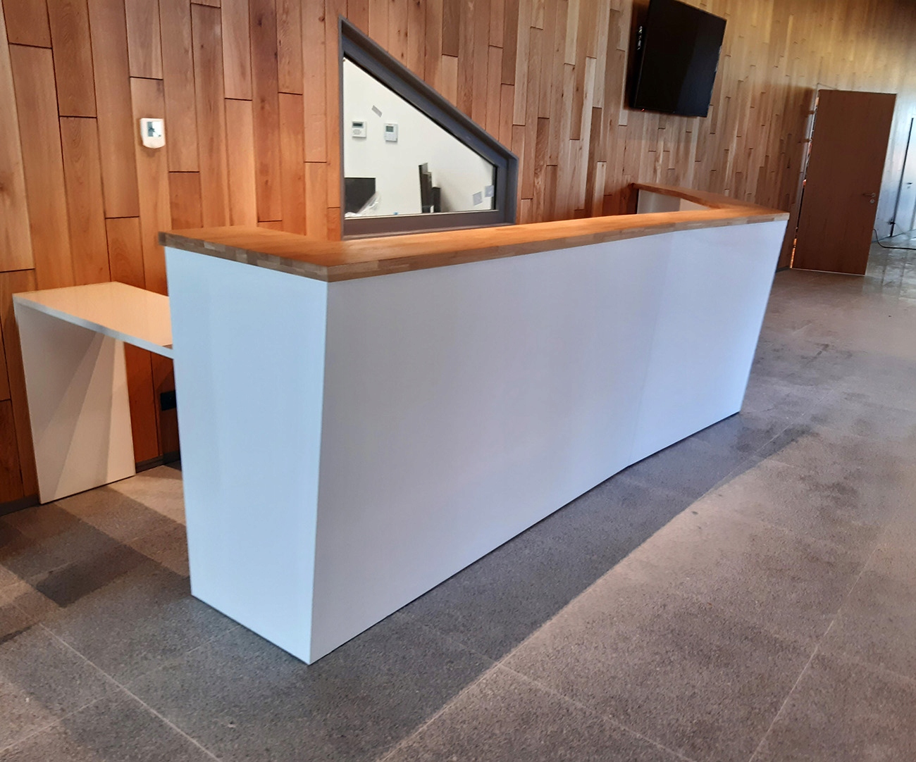 Стійка ресепшн дерево R116 LED похила 400х130см