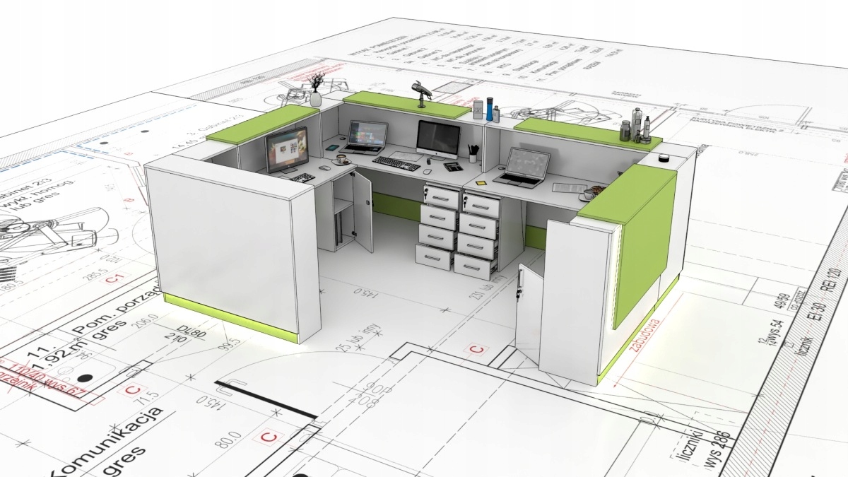 - Возможность добавить контейнеры, полки, шкафы, выдвижную клавиатуру (за цену)