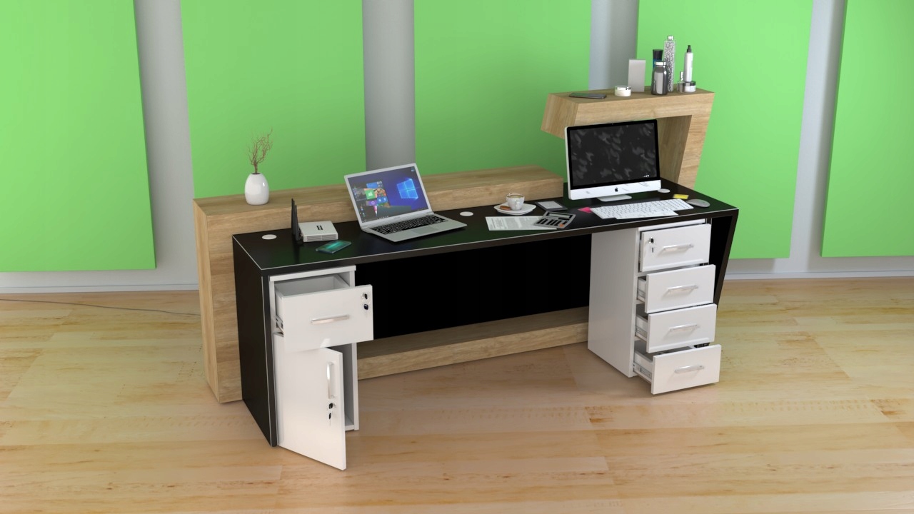 Классическая стойка ресепшн R50 с четко очерченной формой идеально подойдет для помещений среднего размера, где происходит обслуживание клиентов.