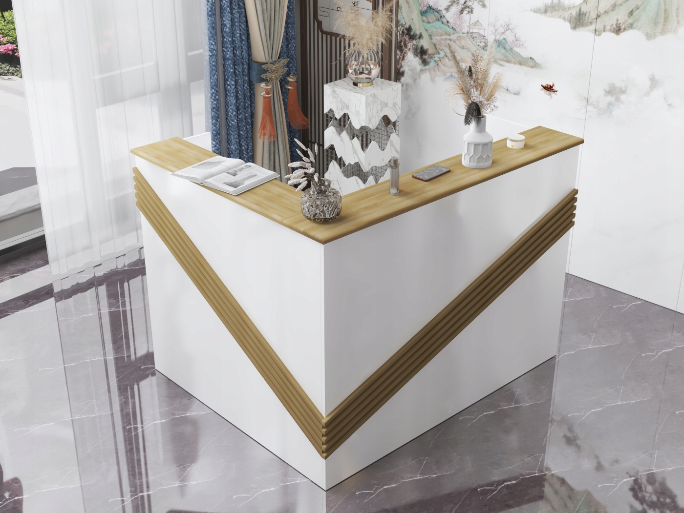 Компактная и чрезвычайно элегантная стойка администратора R212 представляет собой сочетание классической формы с модными ламелями и деревянной столешницей. Красиво скомпонованная стойка с современными вставками из ламелей, придающими свежесть, будет красиво смотреться как в магазине одежды, так и в офисе благодаря естественной форме целого.