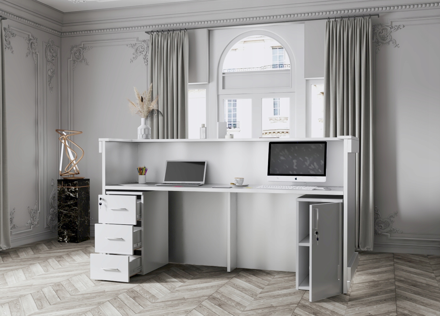 Внутри стойка может иметь любую конструкцию (ящики, полки и т.д.)