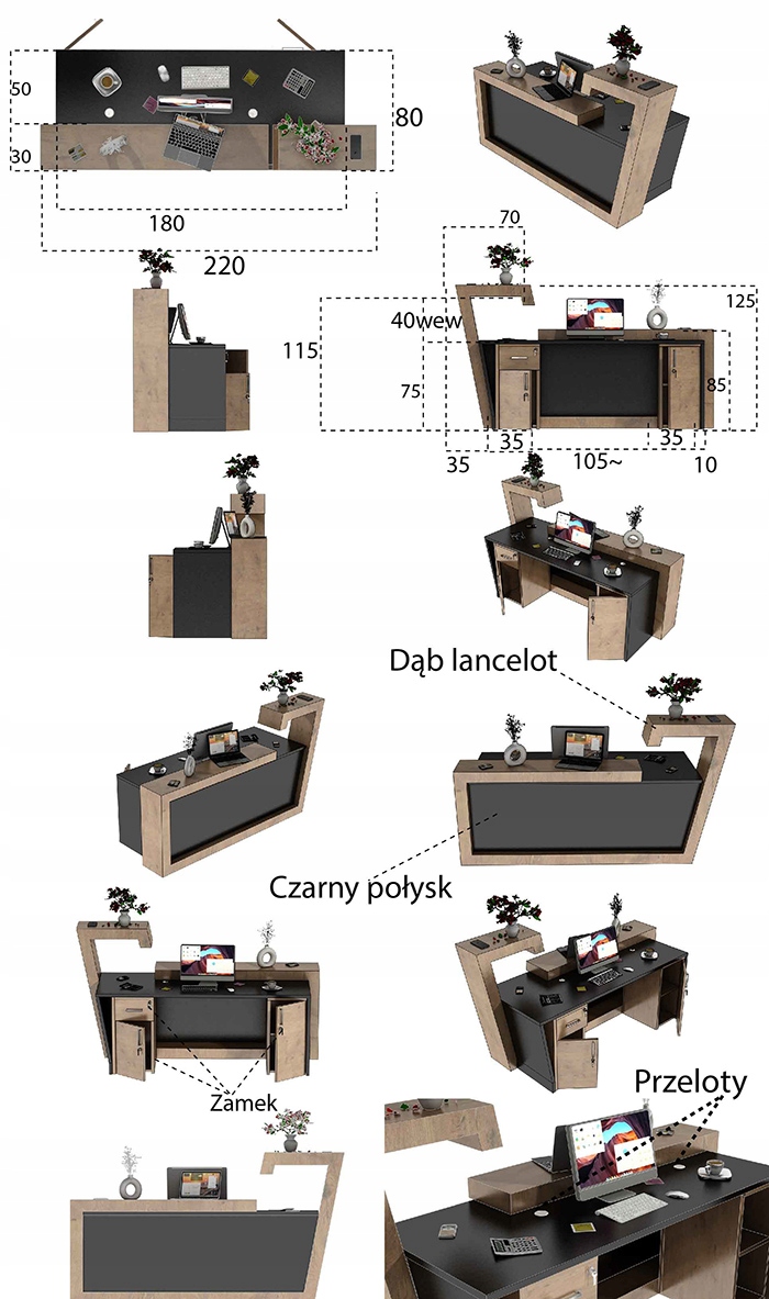 - высота столешницы 115 см (предлагается) p>