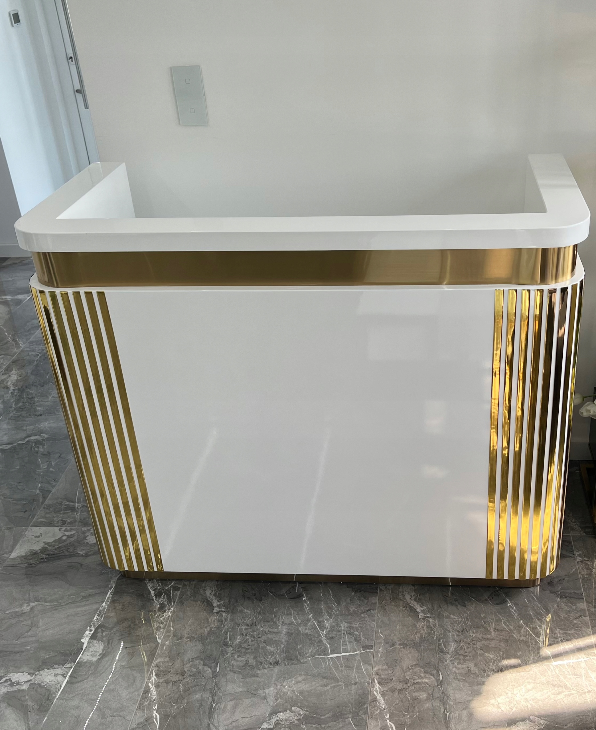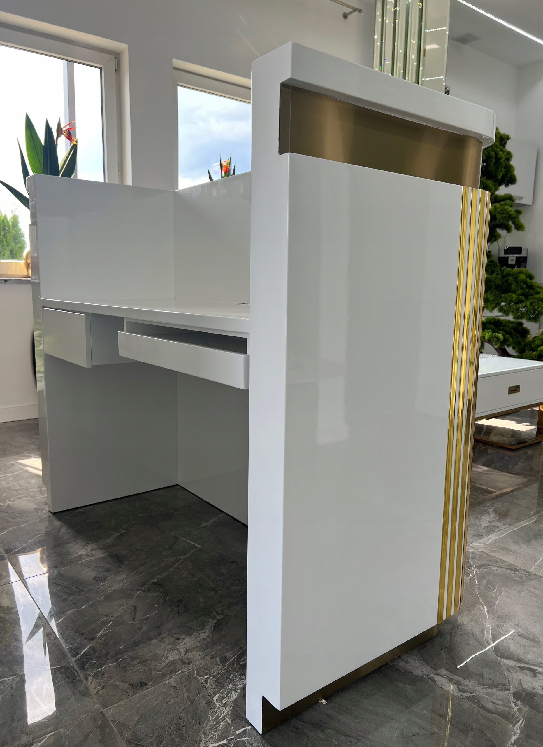 Бело-золотая стойка/ресепшн магазина премиум-класса 140x60x115