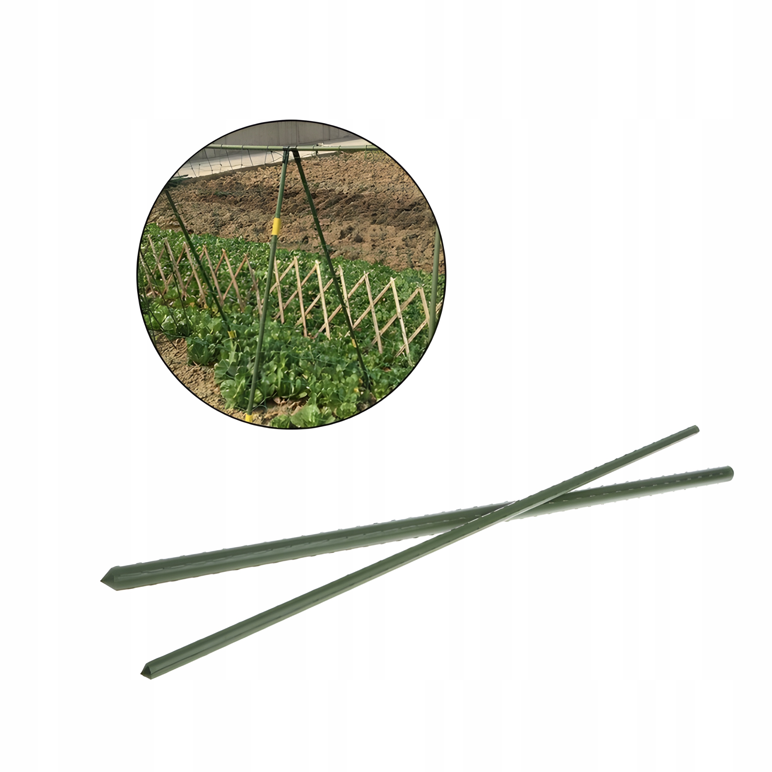 Используется в качестве опоры для некоторых вьющихся растений, таких как помидоры, огурцы, фасоль, идеально подходит для крепления деревьев, кустарников, виноградной лозы. Столбы не позволяют фруктам и цветам расти беспорядочно и утяжелять стебли. Столб сложно сломать при транспортировке и использовании, но его можно использовать повторно в течение многих лет. Столбы имеют наконечники, что гарантирует более быстрый и простой монтаж. Поверхность шеста гладкая с выпуклыми вставками, что делает шест более устойчивым и предотвращает повреждение растения.