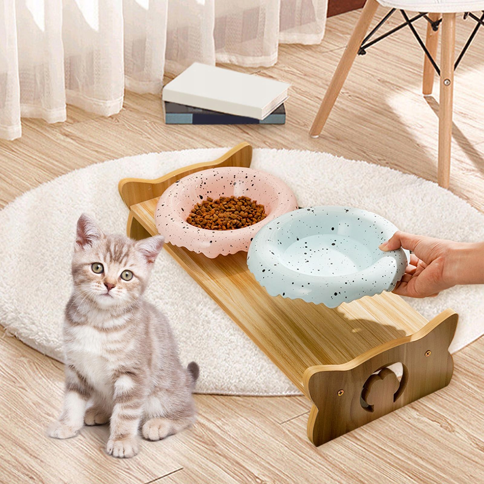 [Функция против чашки]: сплошная деревянная конструкция поднятой подставки для собак помогает избежать переворачивания животного блюдами, уменьшая беспорядок и отходы