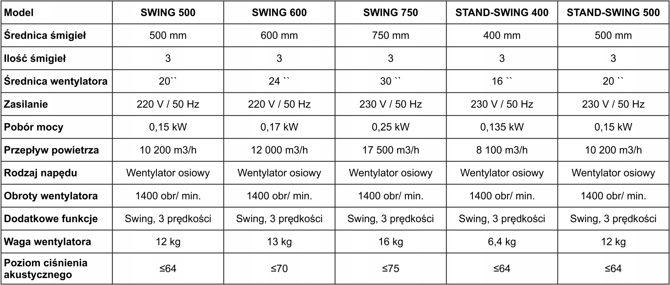 СТІЙНИЙ ВЕНТИЛЯТОР SWING 500 (10 200м3/год)