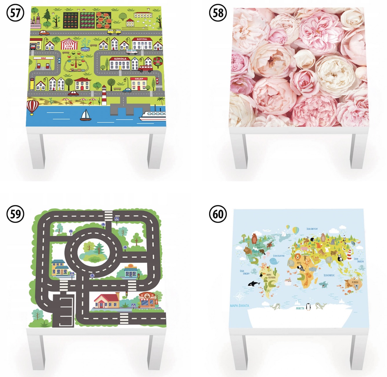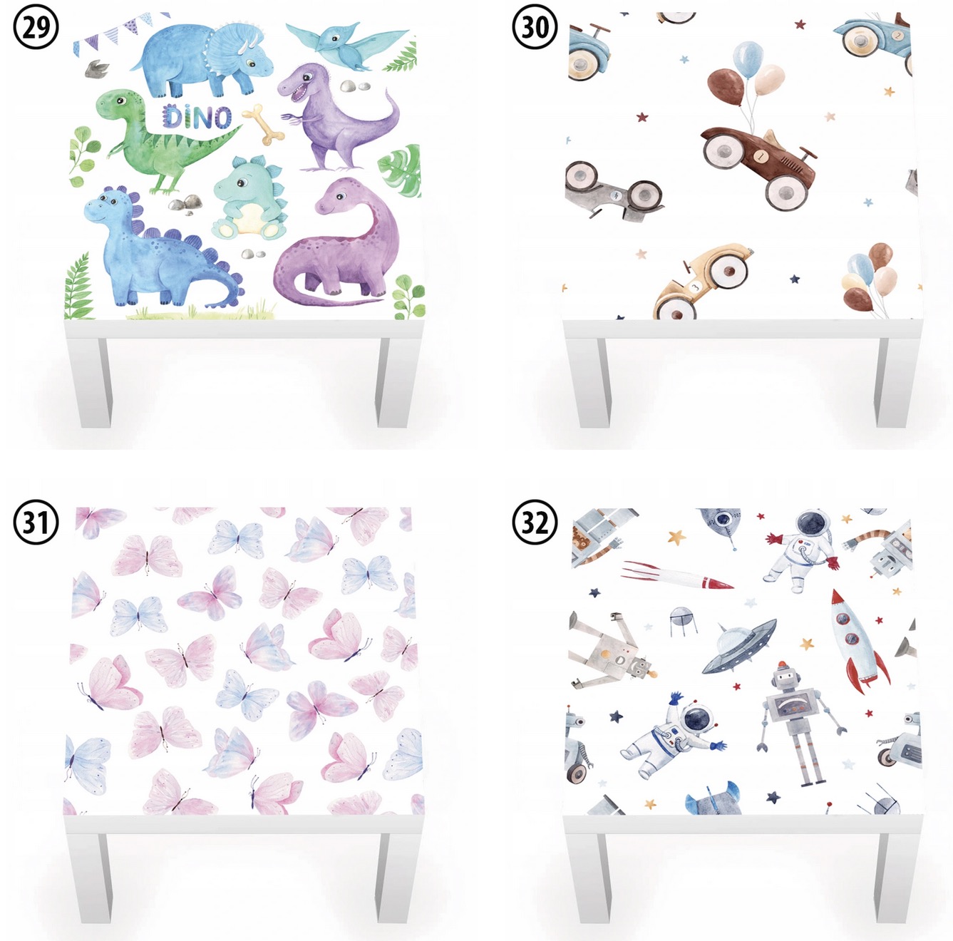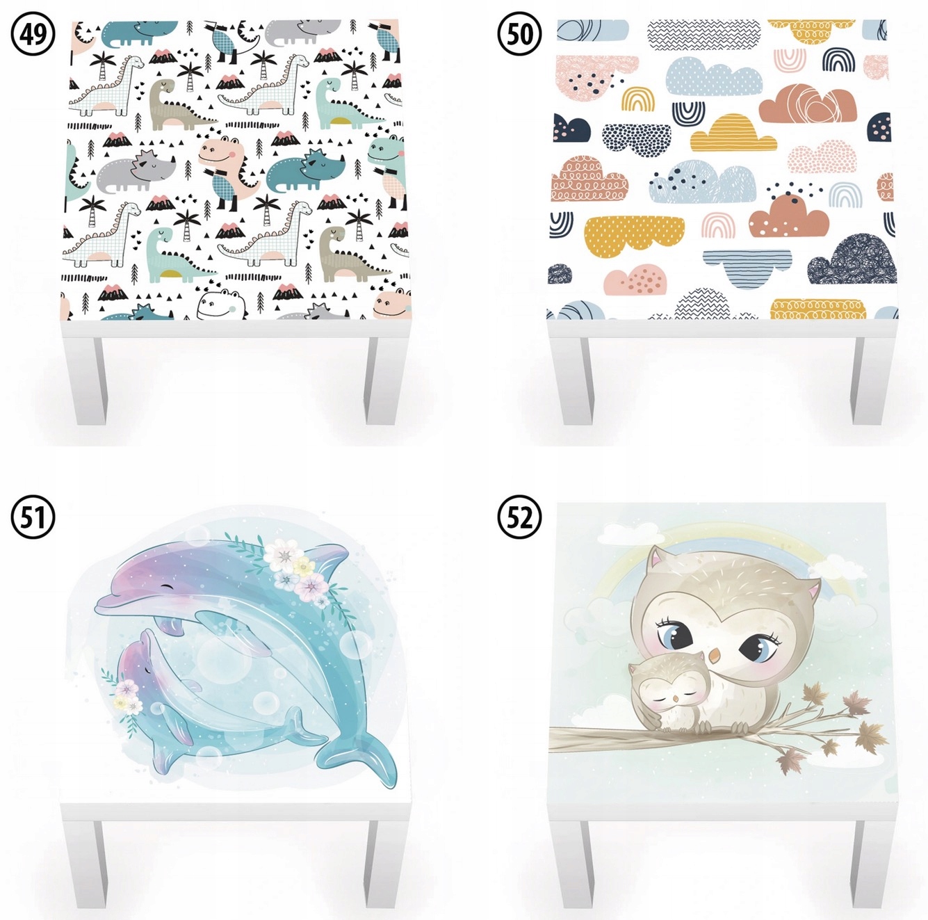 - размер: 54х54см. Стол Ikea Lack имеет ширину 55 см. Наклейка должна быть наклеена на расстоянии 0,5 см от краев стола.