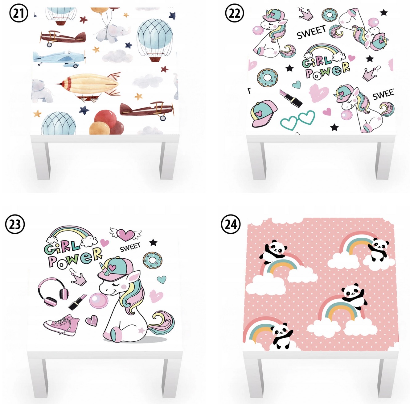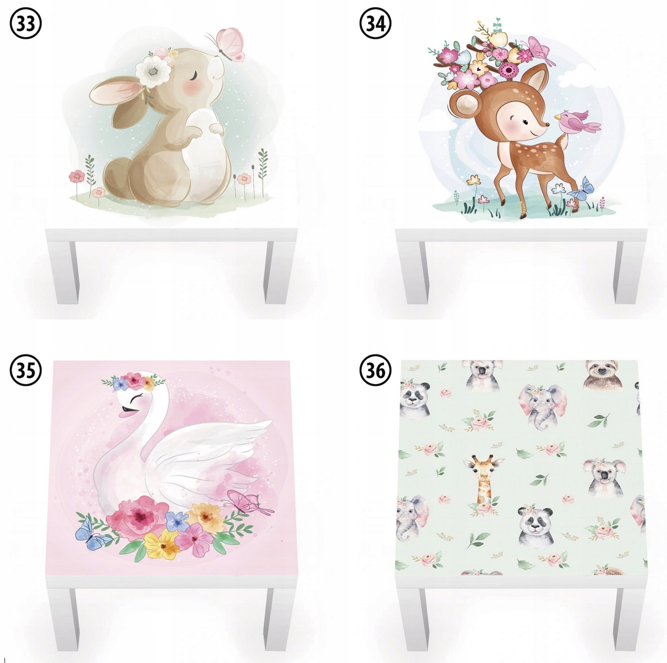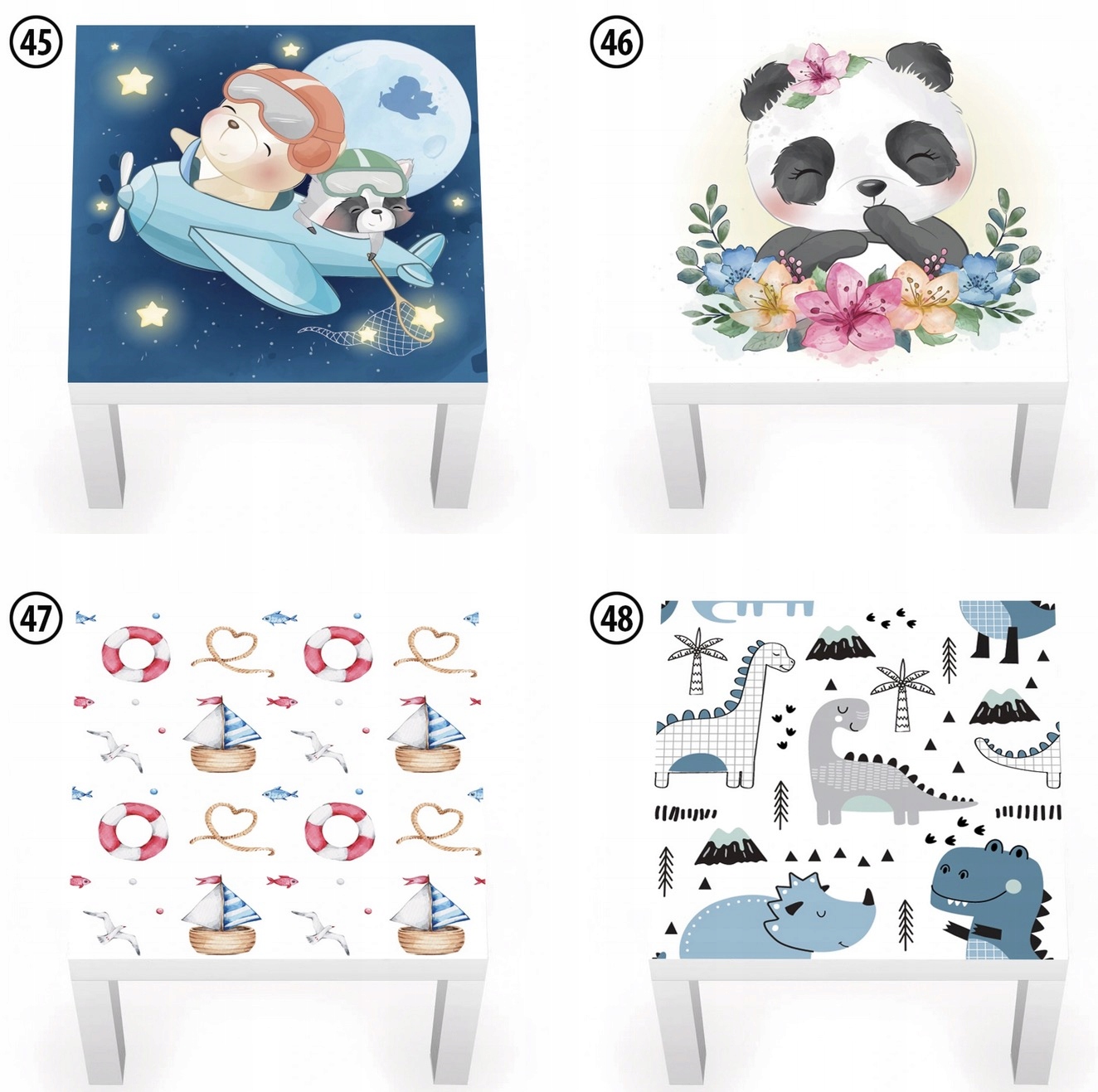 - размер: 54х54см. Стол Ikea Lack имеет ширину 55 см. Наклейка должна быть наклеена на расстоянии 0,5 см от краев стола.