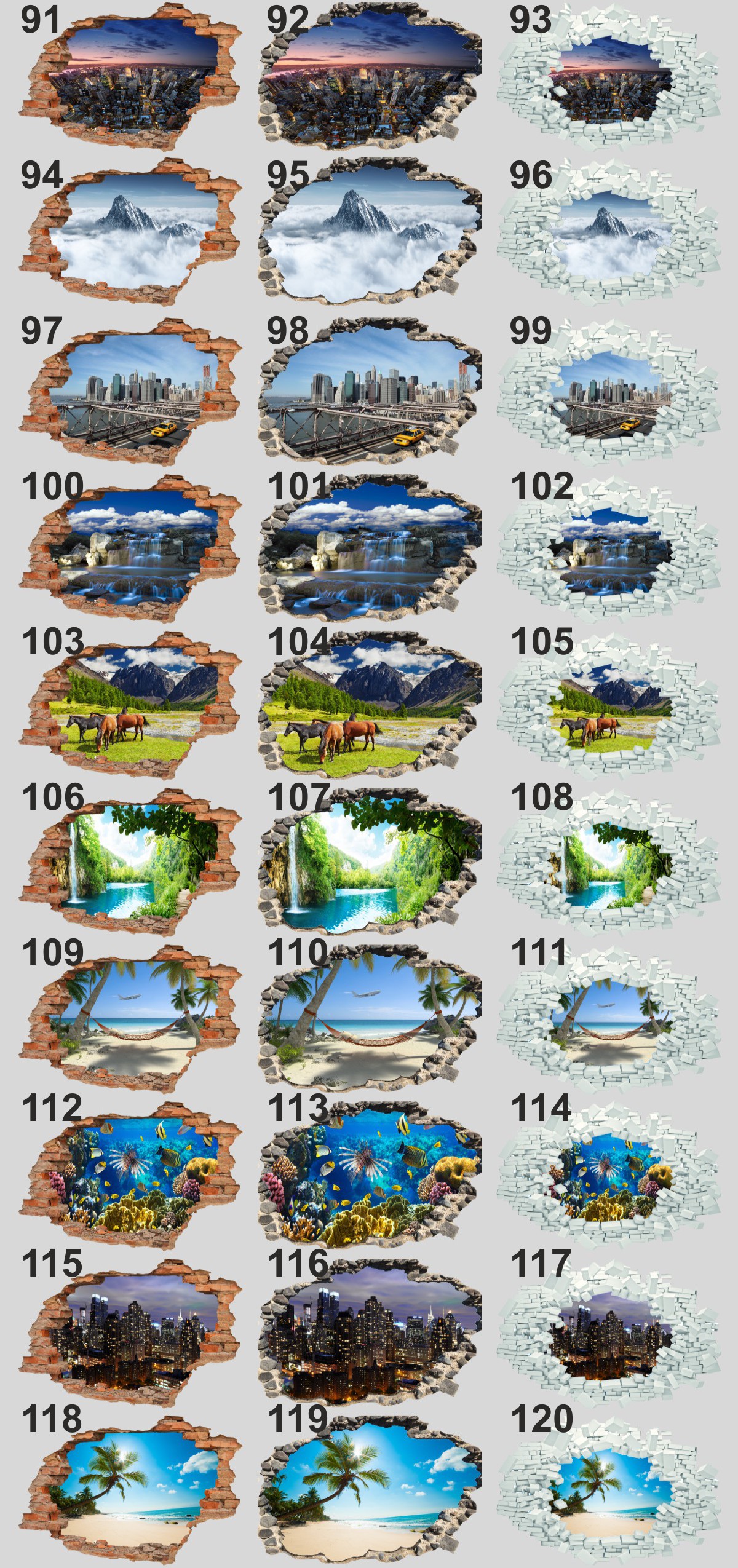 Стикер стены красивый вид 3D отверстие 130x90cm
