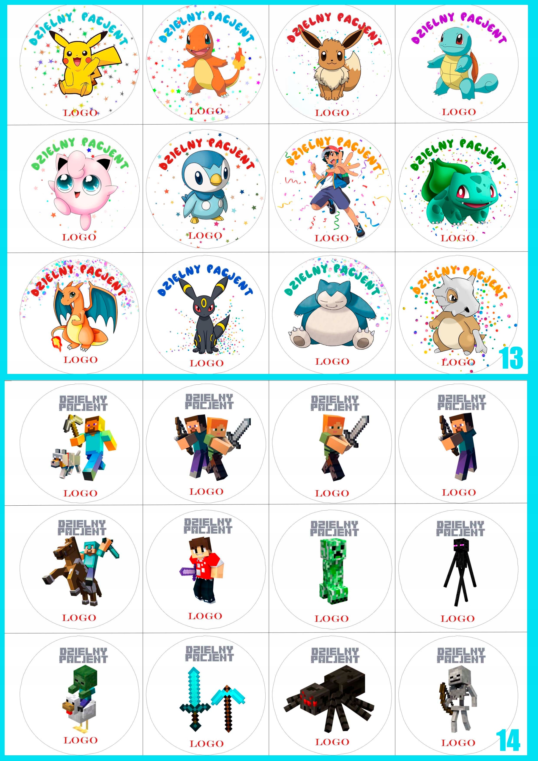 Стікери «Хоробрий пацієнт» з власним логотипом, 4,5 см, 192 шт, багато дизайнів