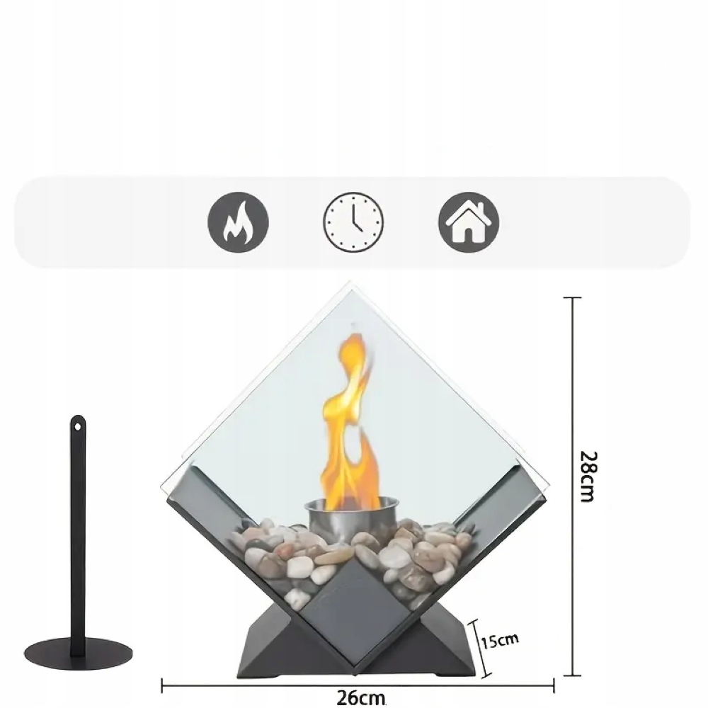 Создать теплую и уютную атмосферу благодаря камину четырехслевого стола с прозрачным стеклом b> и элегантной отделке декоративных камней. Этот стильный, современный источник огня не только функционален, но и прекрасно вписывается в внутреннюю часть каждого дома - от скандинавского до классических аранжировок.