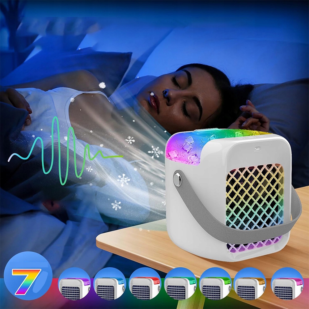 ❄ 3 Скорость, 7 цветов светодиодного света: мини -кондиционер имеет 3 скорости (низкий/средний/высокий) и также может использоваться в качестве прикроватной лампы. Благодаря изменяющимся цветам и тонкому свету, который не обижает ваши глаза ночью, его также можно использовать в качестве ночной лампы.