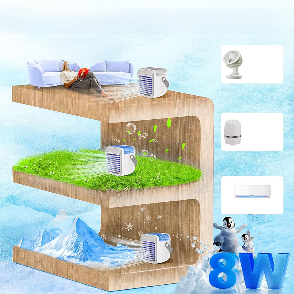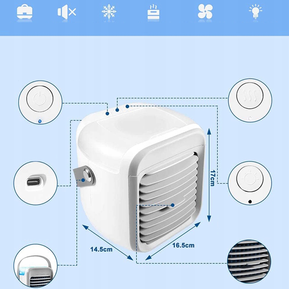 ❄ -3 -in -1 Мини Мини Мини Чейма, мобильный кондиционер без выхлопных шлангов, 3 скорости, светодиодную лампу прикроватного, регулируемое направление ветра, вентилятор с распылением в спальню, Office❄