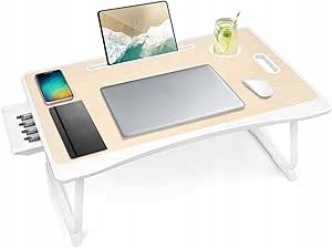 Подставка для стола для ноутбука, прикроватная тумбочка, складная портативная подставка для ноутбука, подставка для ноутбука для чтения с выдвижным ящиком и подстаканник для завтрака. кровать, тахта, диван, белый
