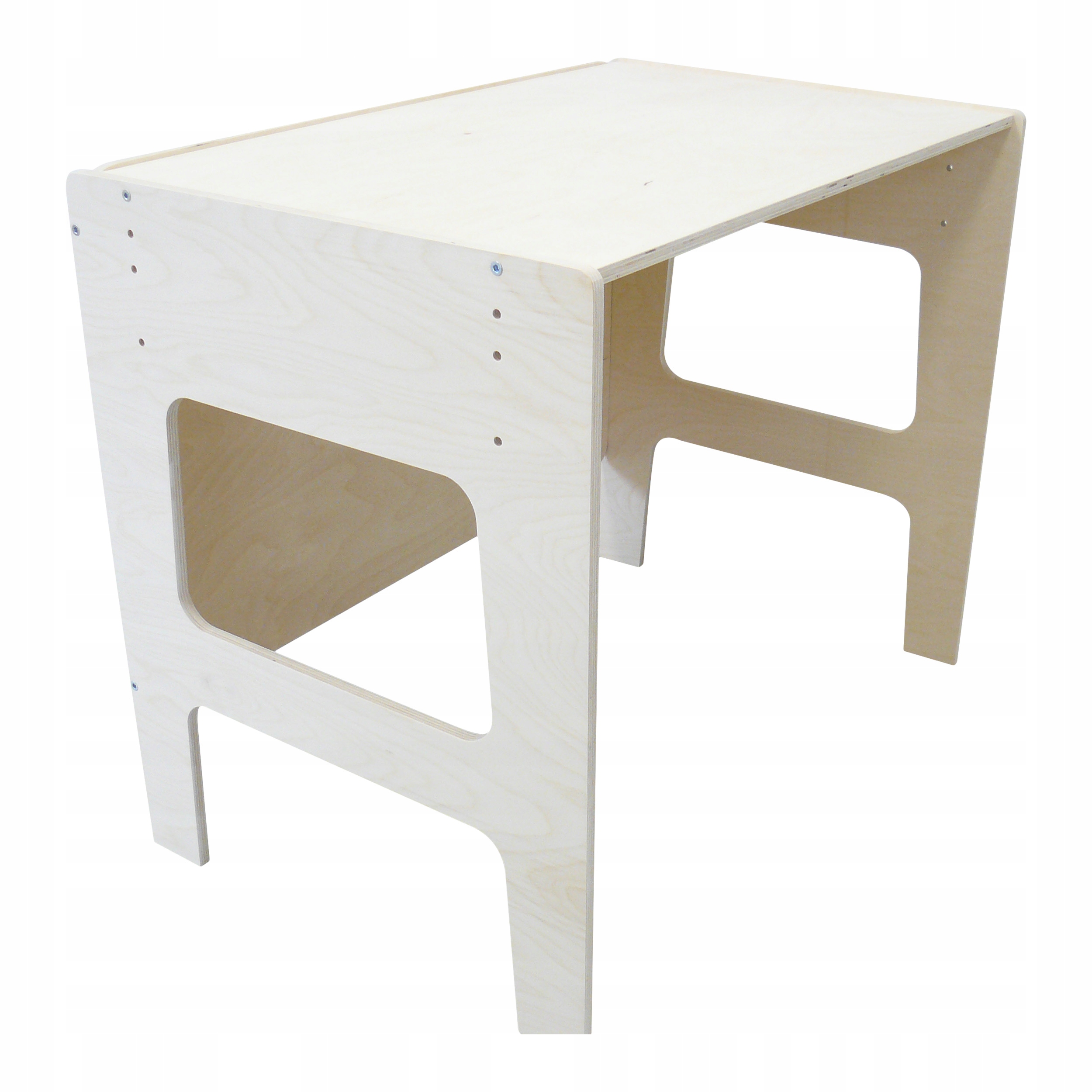 Комплект состоит из стола. Он изготовлен из фанеры, не покрыт лаком. Стол имеет три уровня регулировки: старший, младший и младший плюс. Наш стол прекрасно дополнит меблировку детской комнаты, сделав ее интерьер теплым и веселым. Стол функциональный и не занимает много места. Ваш ребенок найдет идеальное место для игр, рисования и даже приема пищи.