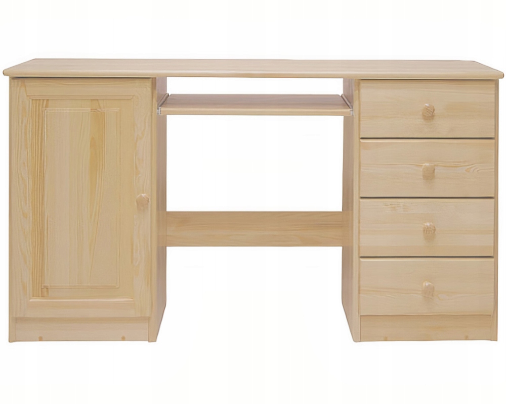 Деревянный стол полностью изготовлен из массива массива сосны. Спинка и внутренние элементы из ДВП. Ящики оснащены жесткими роликовыми направляющими, а двери имеют прочные чашечные петли.