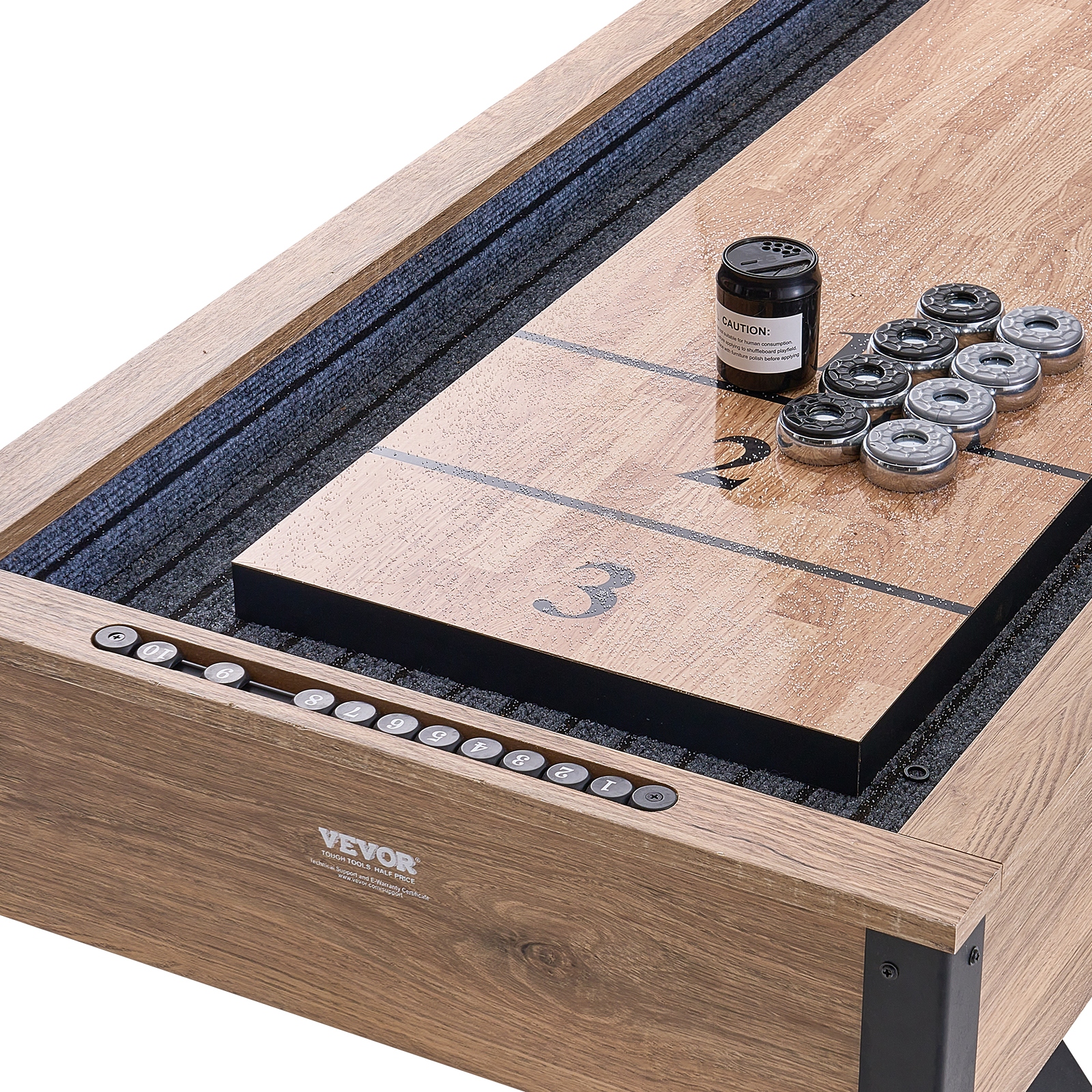 Блестящая игровая площадка: наш стол для шаффлборда имеет поверхность с поликарбонатным покрытием, которая обеспечивает плавную и быструю игру диска. Глянцевая игровая поверхность устойчива к царапинам и сохраняет свой первозданный вид даже после многократных игр.