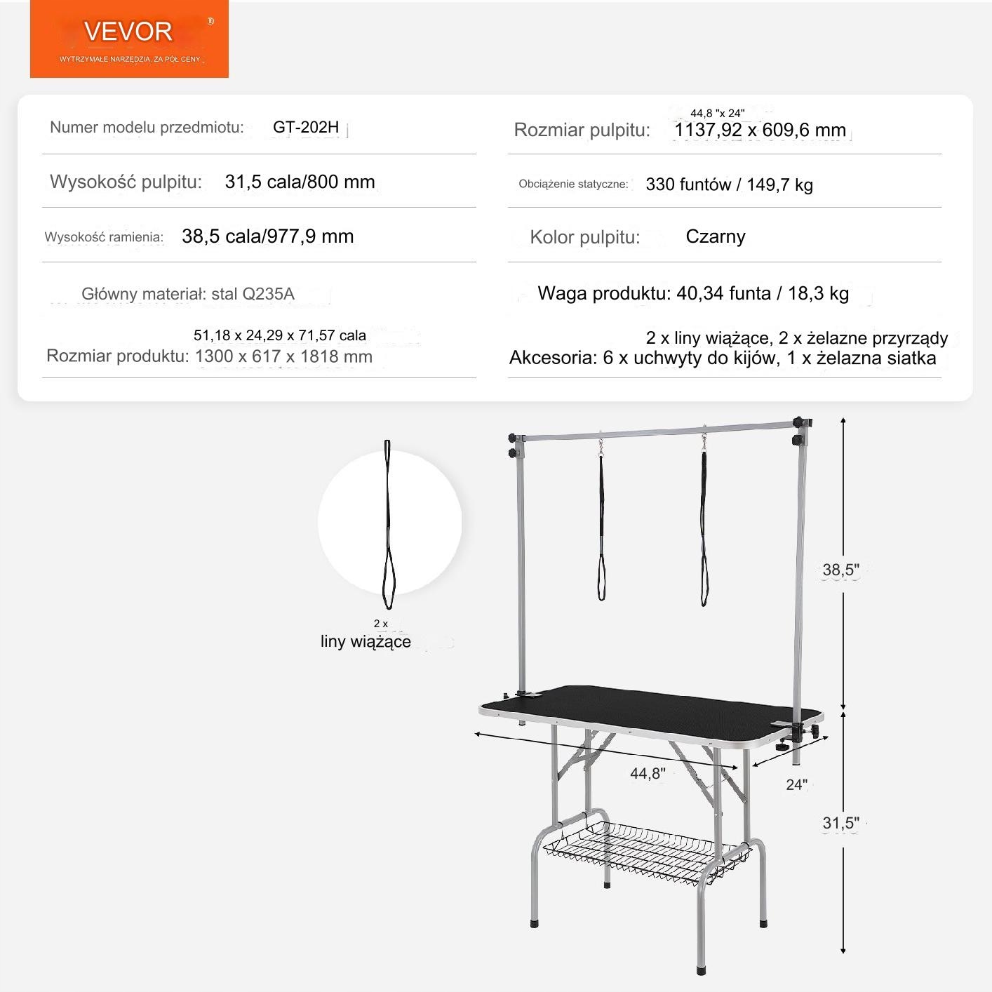 Стіл для грумінгу, тример, ветеринарний поводок, собака, 114 х 61 см