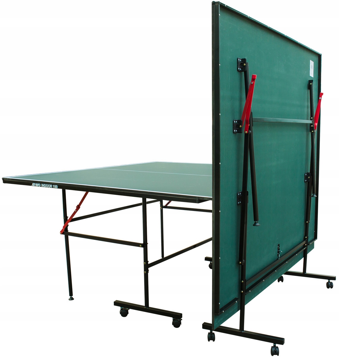 Стол для настольного тенниса 1-12и, предназначенный для развлекательной игры в закрытых помещениях. Стол имеет транспортировочные колеса, которые облегчают его перемещение, что в сочетании с возможностью легкого складывания делает его очень функциональным в домашнем спортивном зале. Большим преимуществом является независимое складывание крыльев столешницы, что позволяет играть в одиночку.
