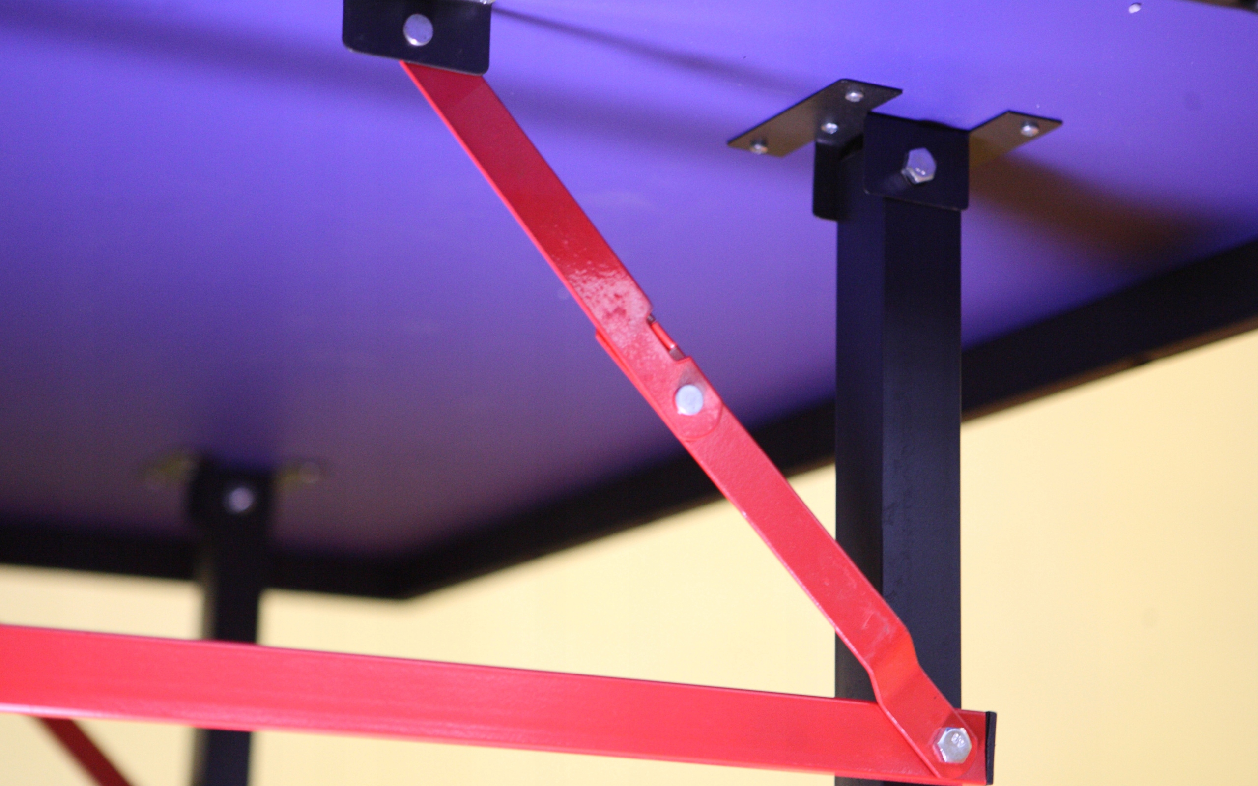 Столешницу можно выровнять на нужном уровне с помощью ручек регулировки высоты, расположенных на концах каждой ножки стола. Рама Club 1800 состоит из двух независимых половин, которые легко складываются для хранения и транспортировки. Каждая половина имеет четыре независимых колеса. При совмещении двух половин стола необходимо лишь небольшое место для хранения.