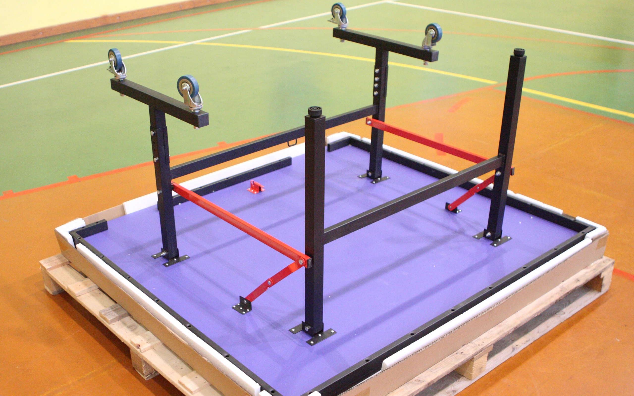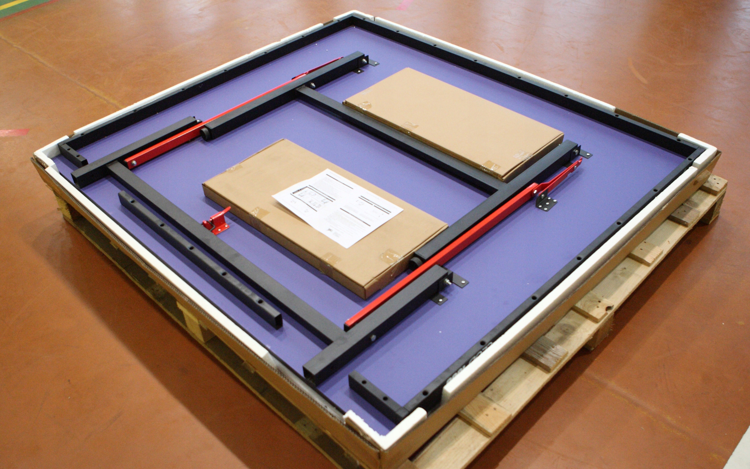 Стол закреплен и доставлен на специально предназначенном поддоне, чтобы избежать повреждений при транспортировке.