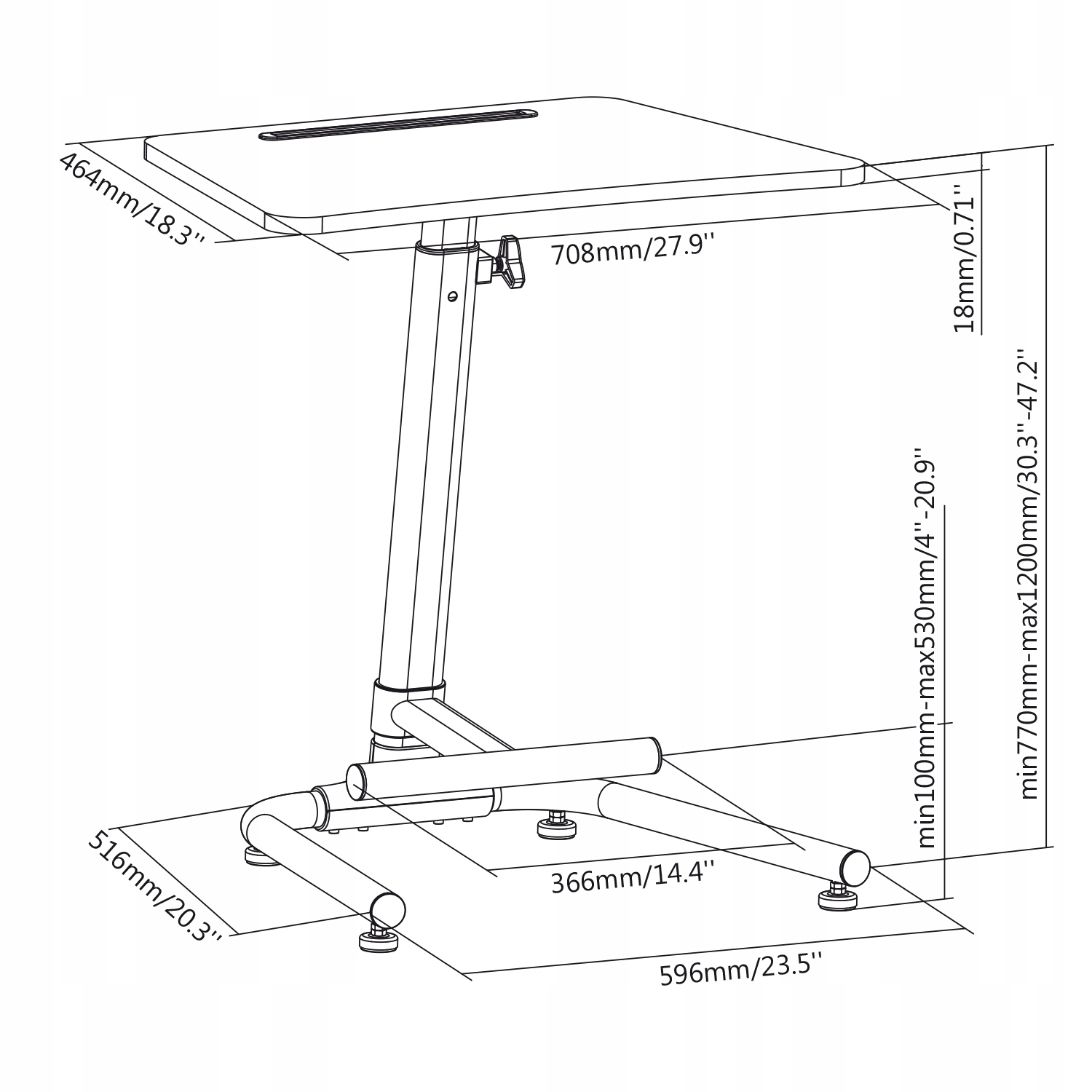- Регулировка высоты поверхности: от 77 до 120 см.