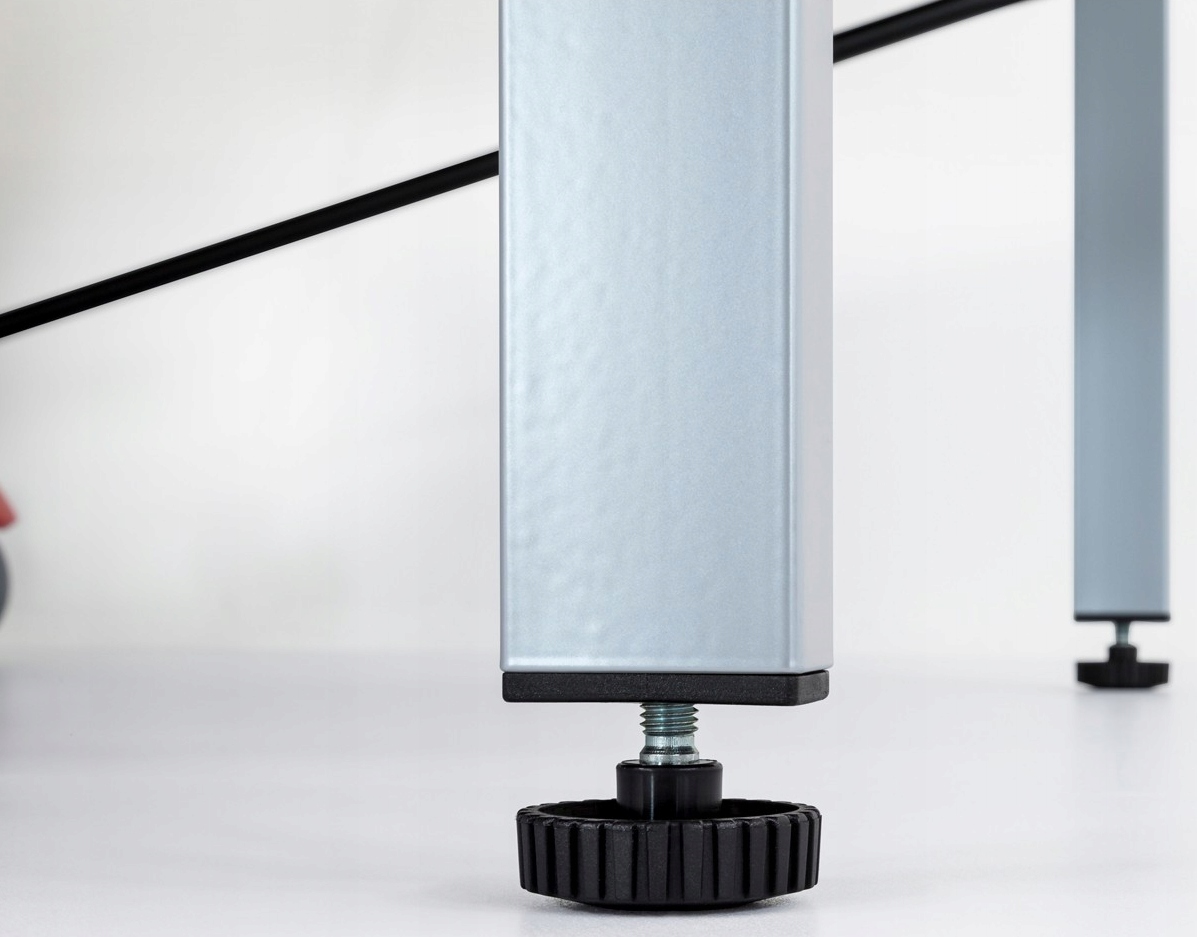 - Регулируемые ножки (до 30 мм) позволяют балансировать стол на неровных поверхностях.