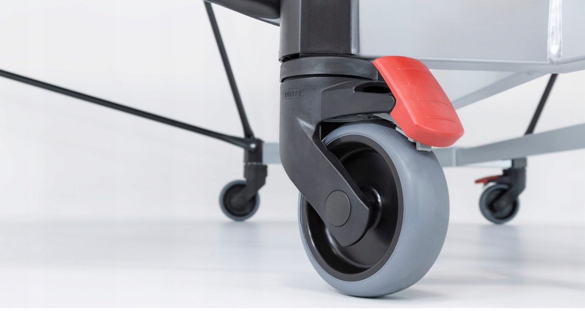 - 4 поворотных колеса диаметром 100 мм с резиновым покрытием на каждой столешнице, по 2 с замок.
