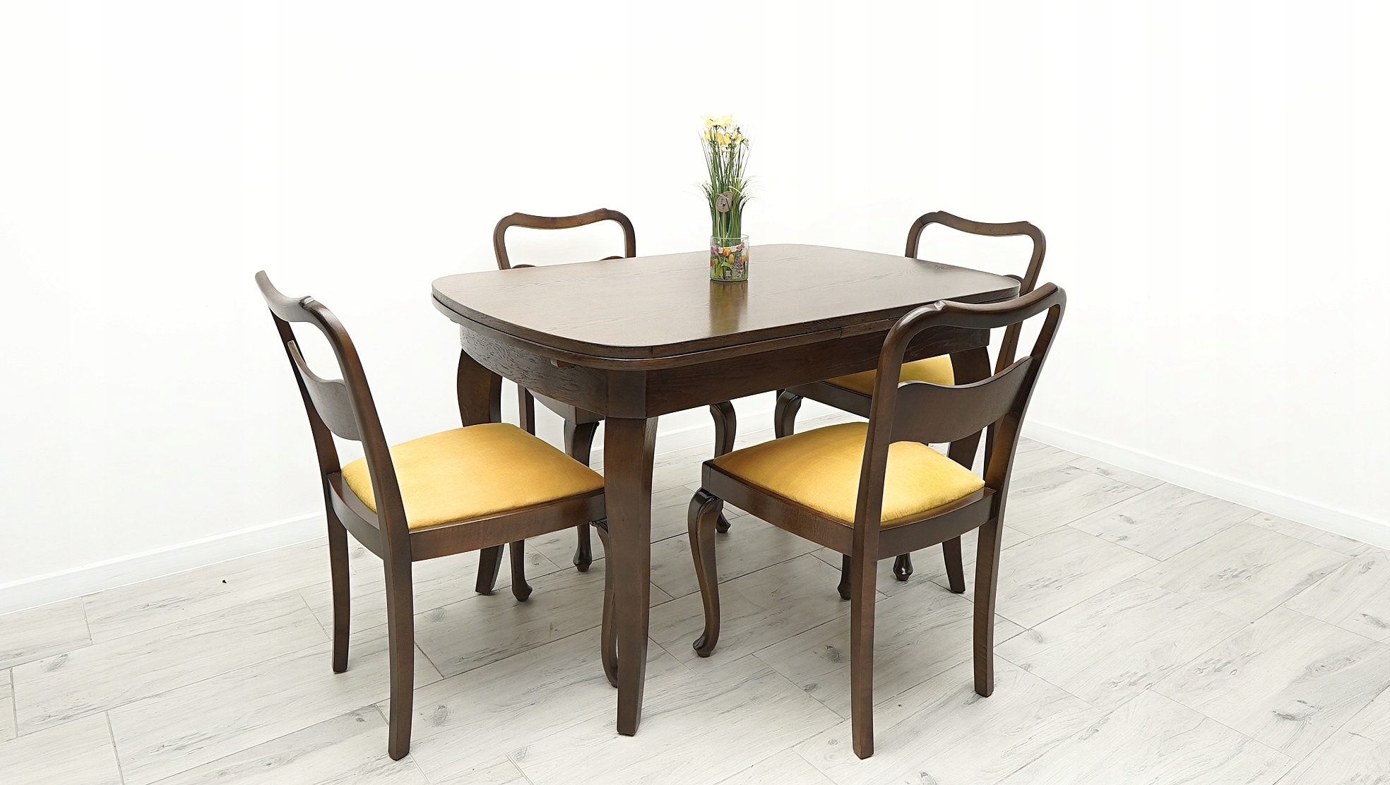 Предметом аукциона является чрезвычайно красивый и очаровательный комплект, состоящий из стола и 4 стульев, изготовленных из древесины дуба и бука, из Германии. Комплект был капитально отремонтирован: и стол, и стулья в очень хорошем состоянии. Весь комплект выглядит очень элегантно и стильно. Выдвижная столешница позволяет разместить больше людей. Кресла обеспечивают высокий комфорт и удобство использования. Своей уникальностью этот набор обязан минимализму и простоте изготовления, придающим ему стиль и элегантность. Это очень практично и функционально.