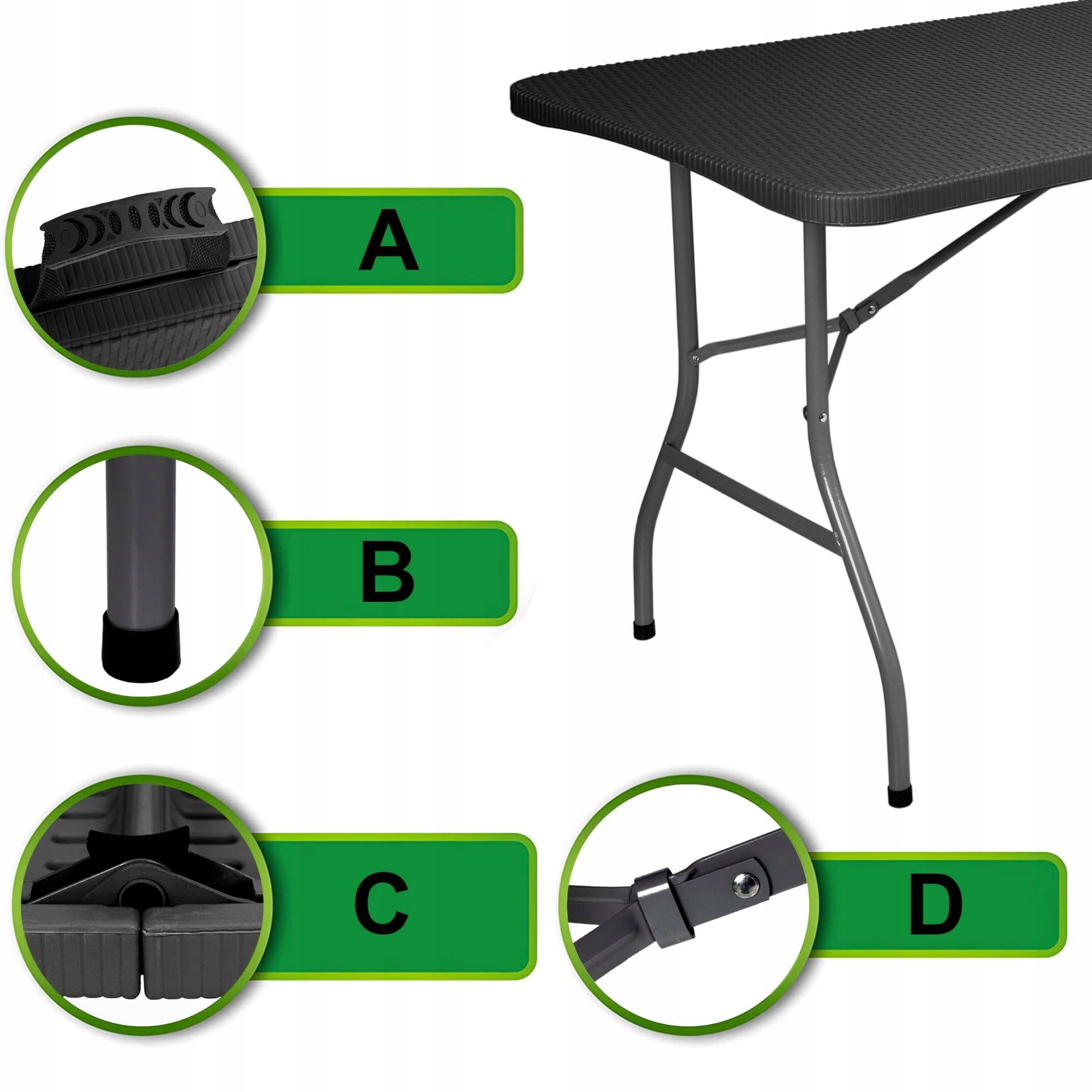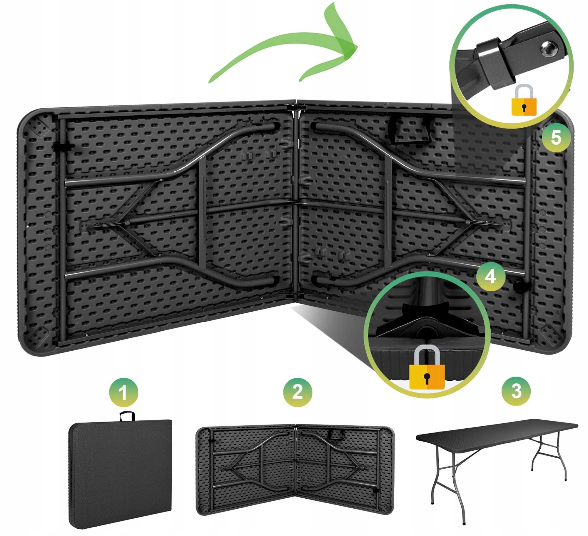 Этот складной обеденный стол представляет собой сочетание функциональности, удобства и стиля. Благодаря уникальному дизайну стол легко превращается в эргономичный чемодан, что делает его чрезвычайно практичным как дома, так и во время мероприятий, пикников и семейных встреч. Столешница изготовлена из прочного полиэтилена HDPE, напоминающего ротанг, что придает ему элегантный вид, а стальной каркас с порошковым покрытием обеспечивает стабильность и долговечность >.