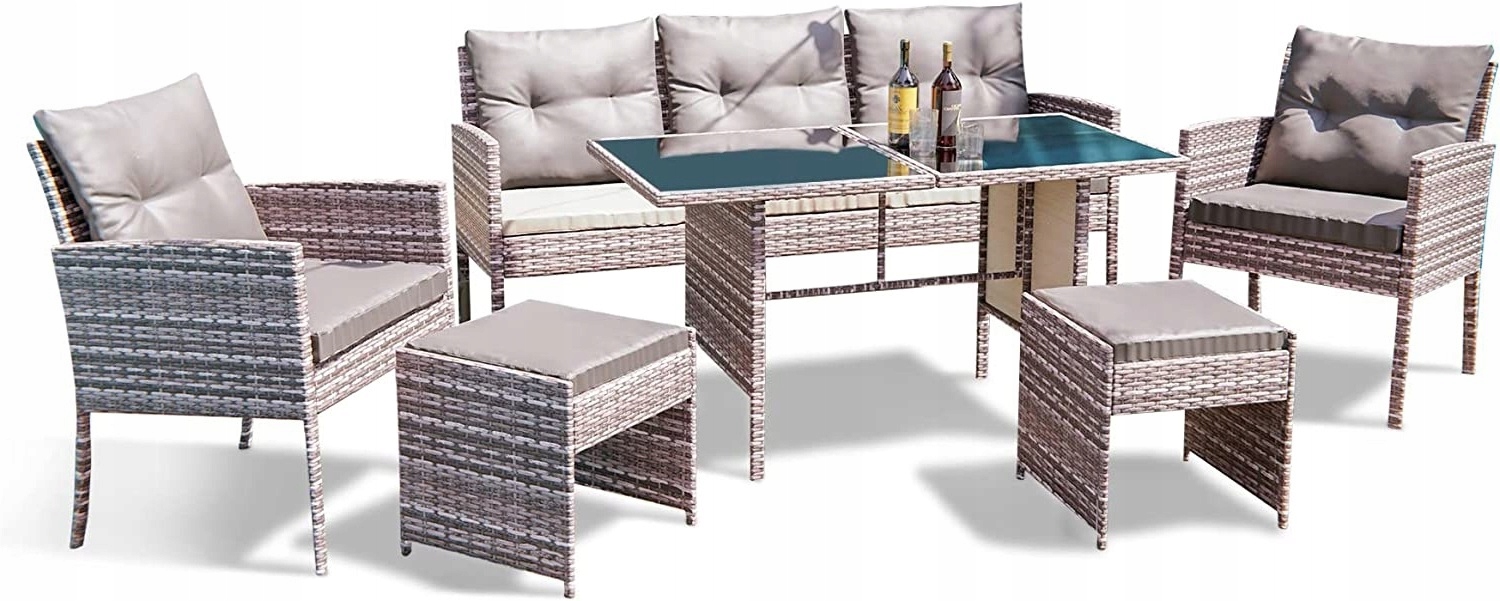 В отличие от обычного ротанга, полиротанг не распадается на мелкие кусочки, устойчив к УФ-излучению и чрезвычайно гибок. Прочный каркас полностью покрыт порошковой краской. Порошковая покраска не только красиво выглядит, но и защищает металл от внешних погодных условий. В отличие от обычной окрашенной рамы, порошковое покрытие абсолютно устойчиво к царапинам и ржавчине. Большие черные стеклянные пластины обеспечат безопасное размещение стаканов и посуды.