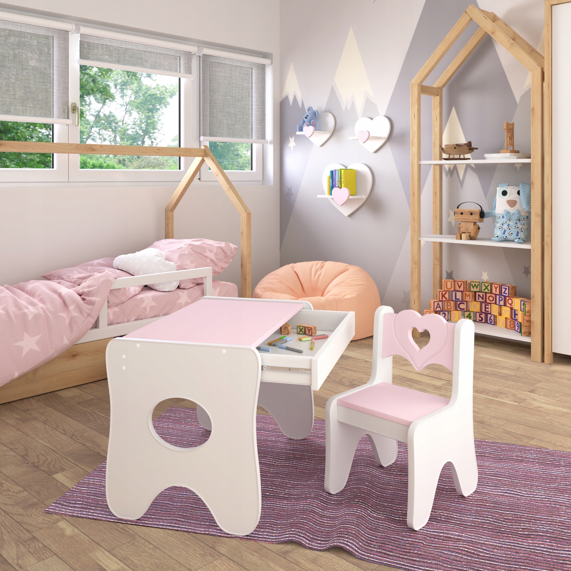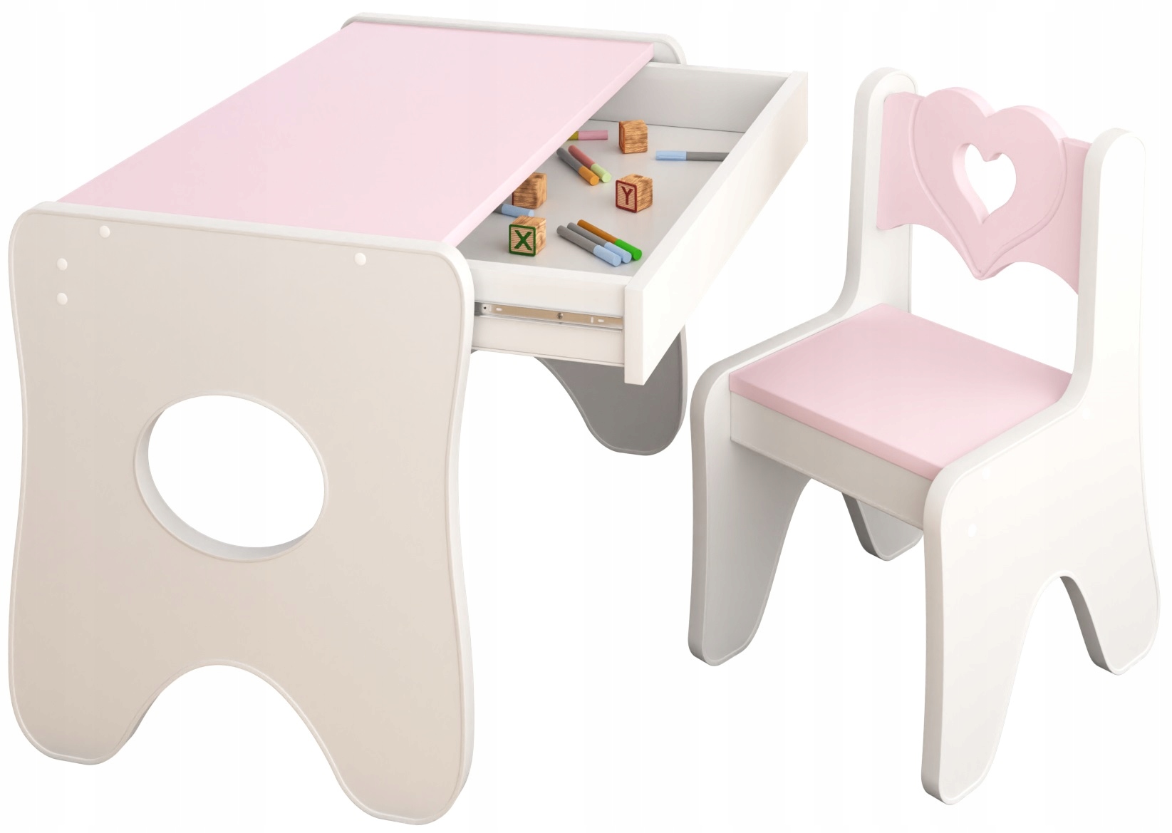 Детский стол и стул – оригинальный стиль в детском интерьере. Детская мебель разработана с учетом безопасности, комфорта и правильного развития самых маленьких. Правильно подобранный стул со столиком – отличный способ создать место, которое станет безопасным для детей. Стол и стульчик для ребенка – основа игры, которая даст волю воображению, создаст идеальные условия для развития каждого маленького художника. Мебель изготовлена из сертифицированных материалов, качественный ламинированный мебельный щит, все углы закруглены, что делает использование мебели безопасным для наших детей, преимуществом является современная и очень устойчивая конструкция и ящик под столом, где ребенок в любой момент можно что-то спрятать или вынуть, чтобы без ограничений создавать собственные развлечения. В зависимости от ваших потребностей стол можно использовать для учебы, рисования, игр или еды.