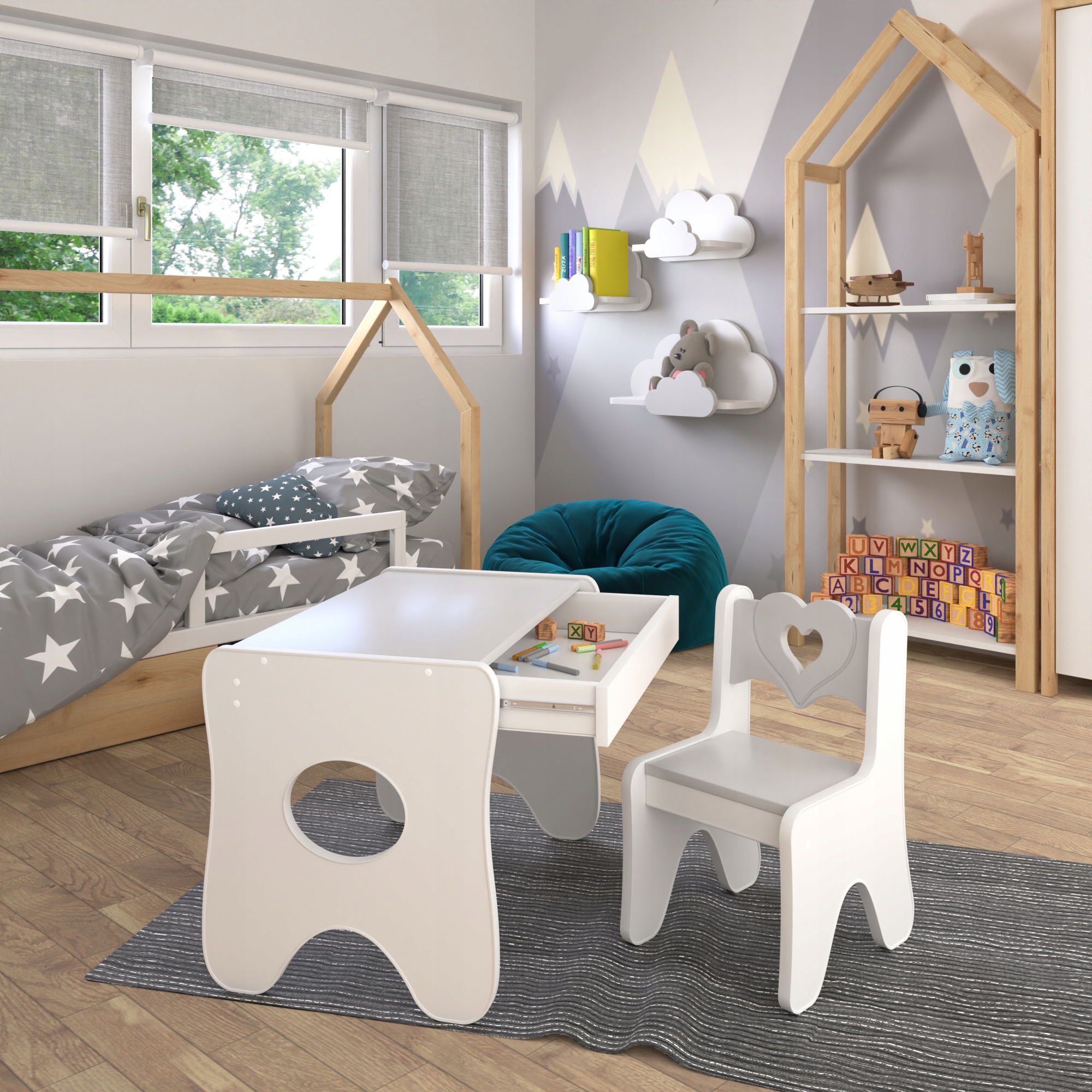 Детский стол и стул – оригинальный стиль в детском интерьере. Детская мебель разработана с учетом безопасности, комфорта и правильного развития самых маленьких. Правильно подобранный стул со столиком – отличный способ создать место, которое станет безопасным для детей. Стол и стульчик для ребенка – основа игры, которая даст волю воображению, создаст идеальные условия для развития каждого маленького художника. Мебель изготовлена из сертифицированных материалов, качественный ламинированный мебельный щит, все углы закруглены, что делает использование мебели безопасным для наших детей, преимуществом является современная и очень устойчивая конструкция и ящик под столом, где ребенок в любой момент можно что-то спрятать или вынуть, чтобы без ограничений создавать собственные развлечения. В зависимости от ваших потребностей стол можно использовать для учебы, рисования, игр или еды.