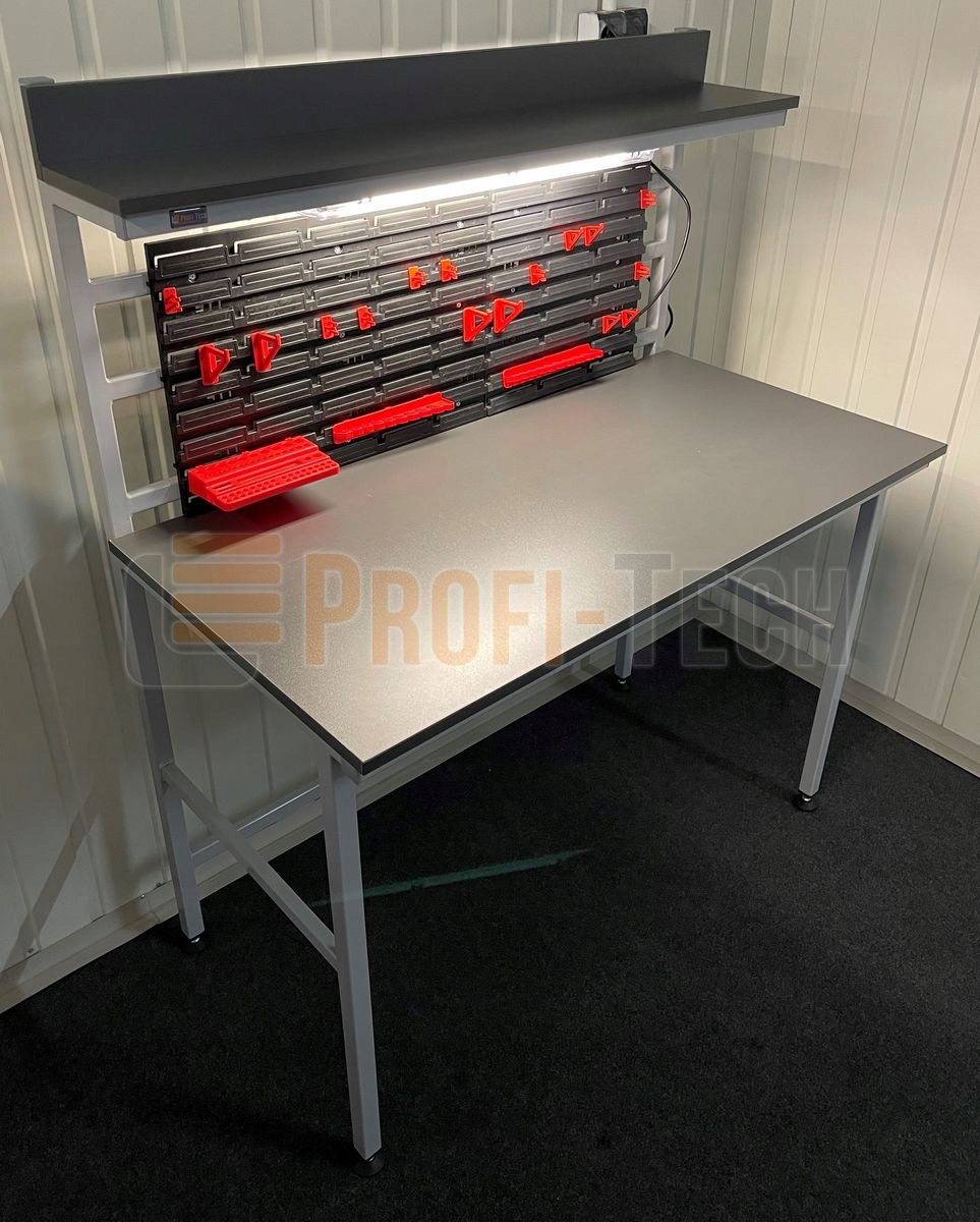 Столы и стойки изготовлены из стальных профилей, которые постоянно защищены порошковым покрытием, края профили заполнены заглушками ПВХ.