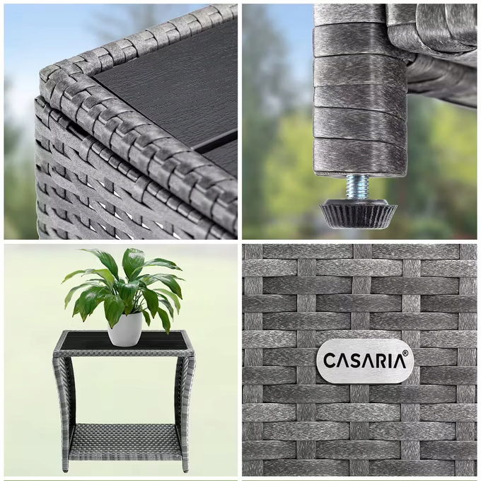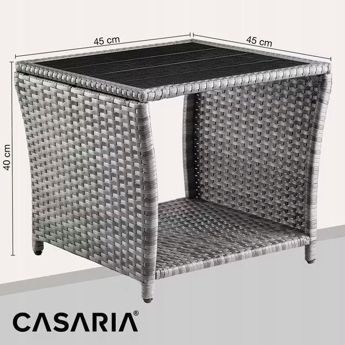 Прочный и чрезвычайно устойчивый к погодным условиям, верхней части WPC, изготовленного из смеси древесного волокна и пластика, впечатляет естественный вид дерева. Кофейный столик можно использовать как внутри, так и снаружи. Под столикой находится место для хранения, где вы можете хранить журналы, книги и другие полезные аксессуары. Столетная рама изготовлена из порошковой стали, благодаря которой она особенно прочная, стабильная и сплошная, нагрузка до 80 кг. Polirattan/ Techno Rattan - очень стабильное, равномерно пластиковое волокно, которое было специально разработано для садовой мебели. Он обладает высоким сопротивлением грязи и легко чистить.