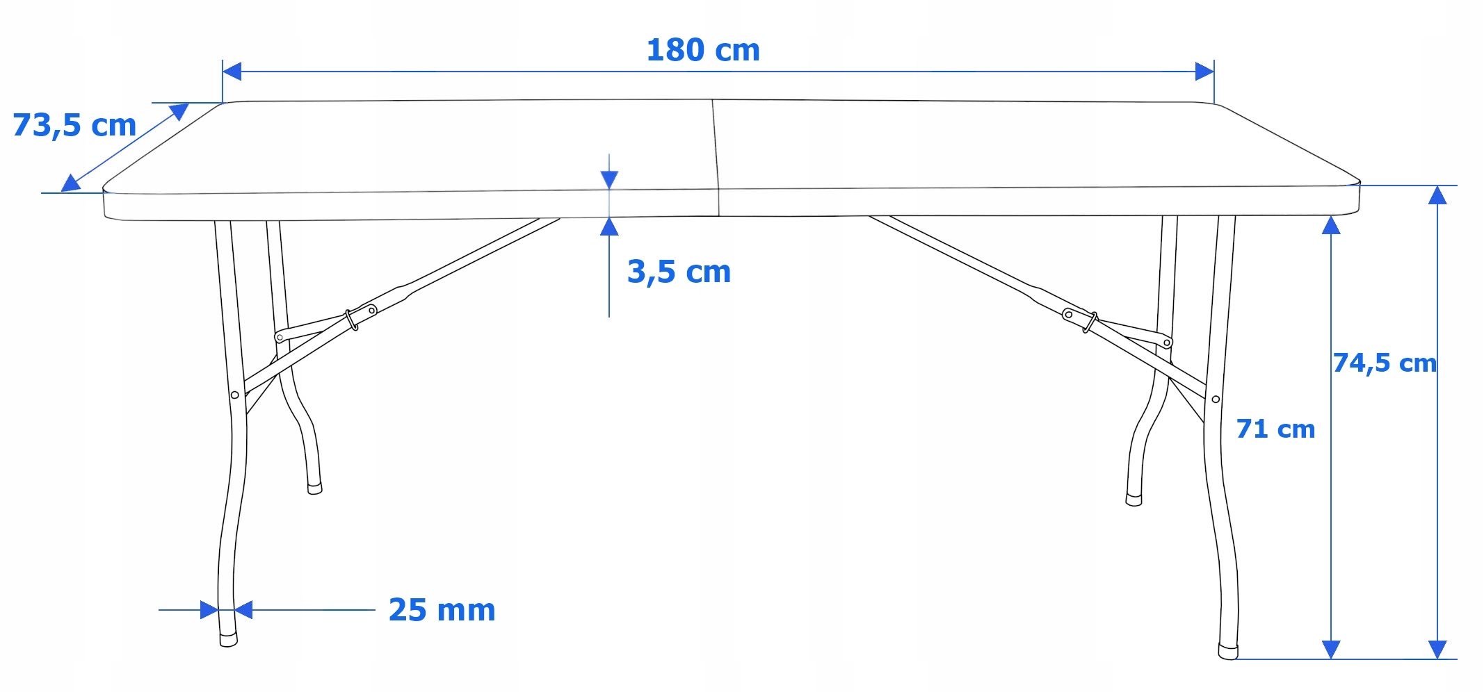 Стол складной для кемпинга/кейтерингового обслуживания. Очень практичный и легкий. Конструкция изготовлена из стали. Столешница изготовлена из прочного пластика. В сложенном виде стол образует практичный чемодан, благодаря чему занимает мало места и легко перемещается.