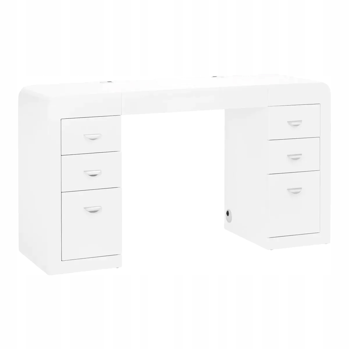 Шкафы с обеих сторон с тремя просторными ящиками > Значительно облегчить организацию и поддержание порядка в самых необходимых косметических средствах и инструментах. Благодаря этому необходимые продукты всегда под рукой, что приводит к эффективности работы. Стол имеет специальные отверстия в столешнице для прокладки кабелей от необходимых устройств, что позволяет легко поддерживать порядок и эстетику рабочего места.