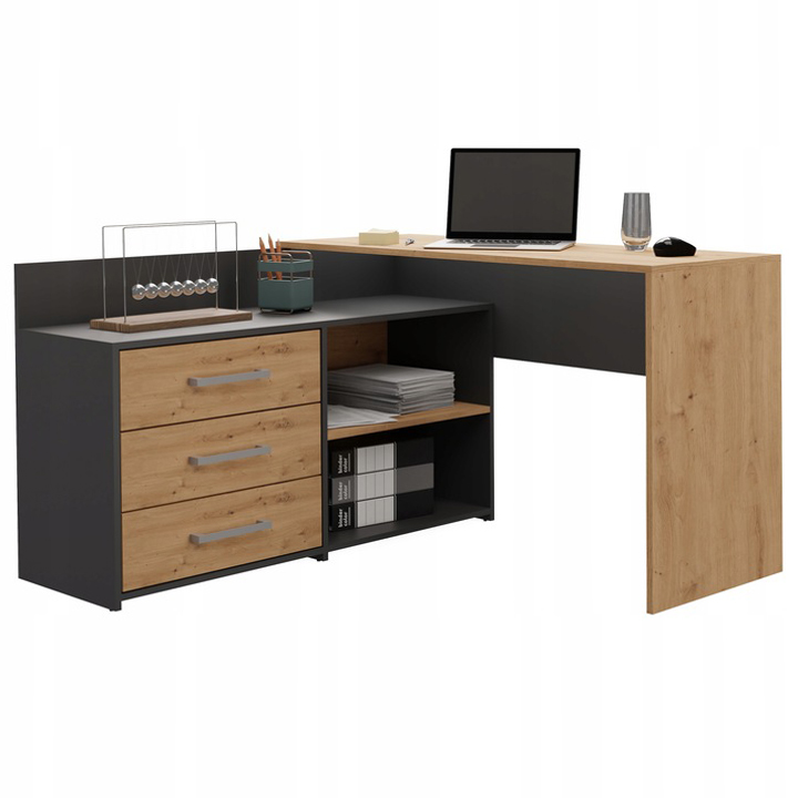 Большой угловой стол с 3 ящиками — предмет мебели, который идеально подойдет как в офисе, так и дома, где нам нужно место для работы или учебы.