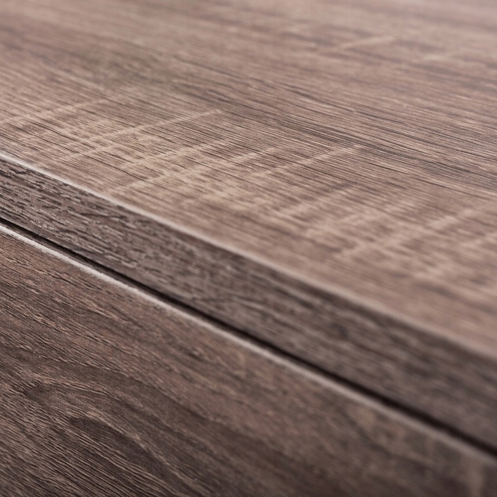 Корпус и столешница - изготовлены из прочного МДФ и покрыты ламинатом Sonoma Tabac Oak, что придает мебели элегантность.