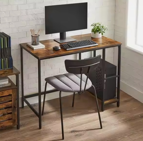 Письменный стол изготовлен из прочных материалов: МДФ рустикального коричневого цвета и стали, что обеспечивает его прочность и долговечность. Размеры стола составляют 120 см в ширину, 60 см в глубину и 74 см в высоту, что делает его идеальным для небольших помещений, сохраняя при этом достаточно места для работы. Изделие поставляется для самостоятельной сборки, что облегчает транспортировку и адаптируется к индивидуальным потребностям.