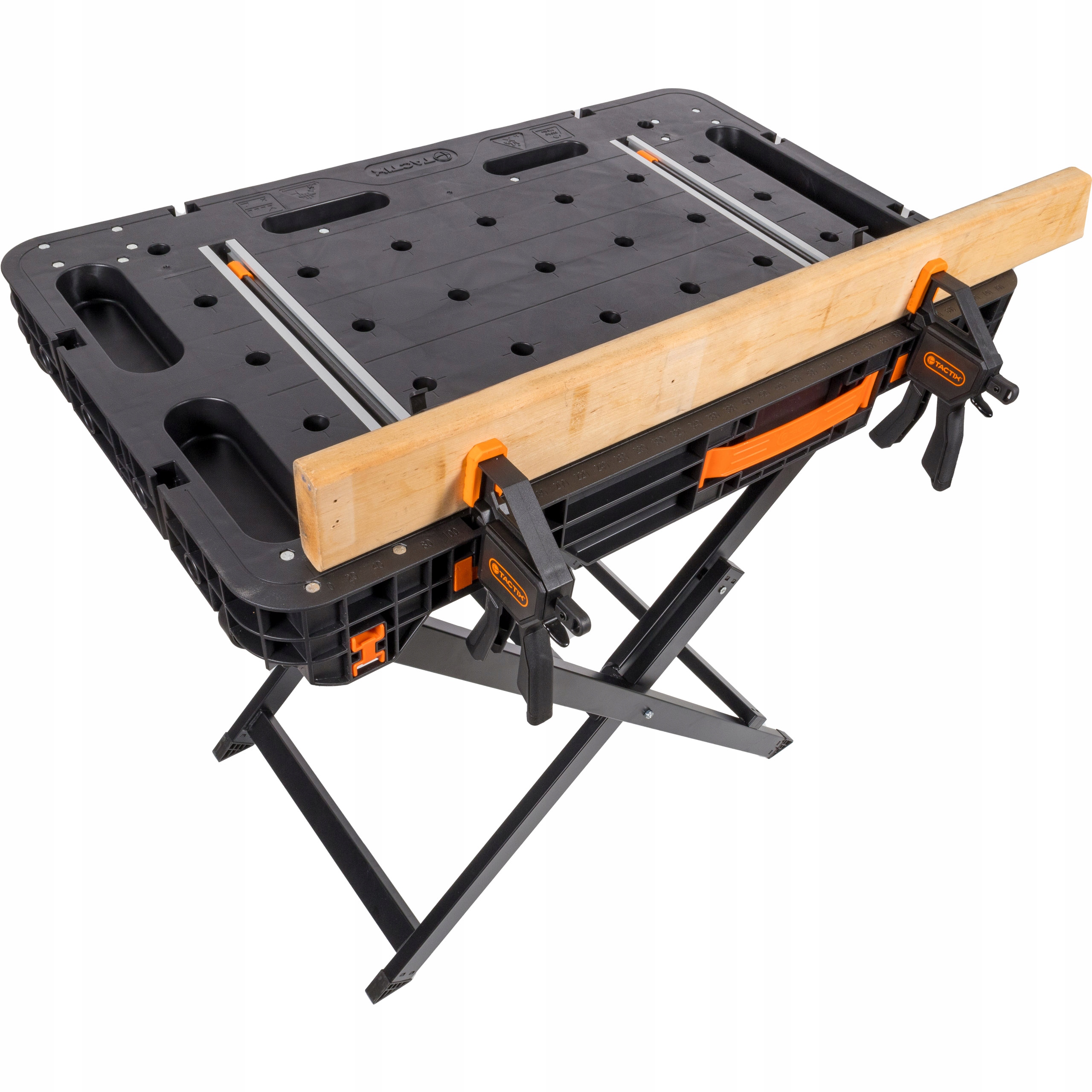 Рабочая таблица TACTIX - это универсальное и практическое решение для каждого, кому нужна профессиональная работа и DUPALITION и функциональность. Модульная конструкция позволяет подключить несколько таблиц в более крупную рабочую платформу для работы с большими материалами, и 2 автоматических зажима помогут их блокировать. Ничего, если вы профессионал или DIY, эта таблица будет соответствовать вашим ожиданиям во всех условиях труда.
