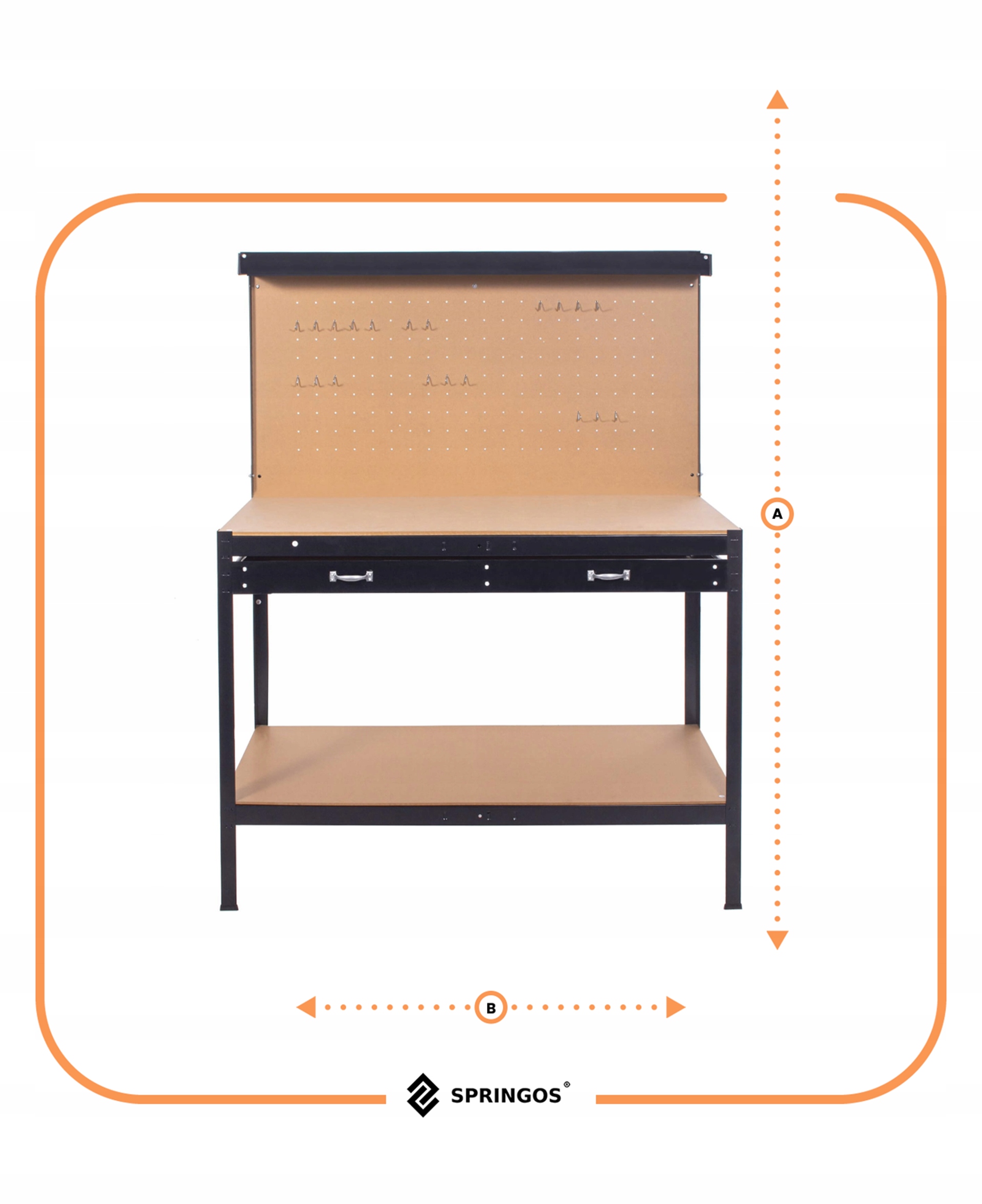 Бренд: Springos® | Цвет: черный (рамка) + бронзовые оттенки | Материал: металлический оцинкованный + MDF | Семинар таблица, оснащенная следующими элементами: Worktop, ящик под столешницей, нижняя полка, верхняя полка, стена с отверстиями