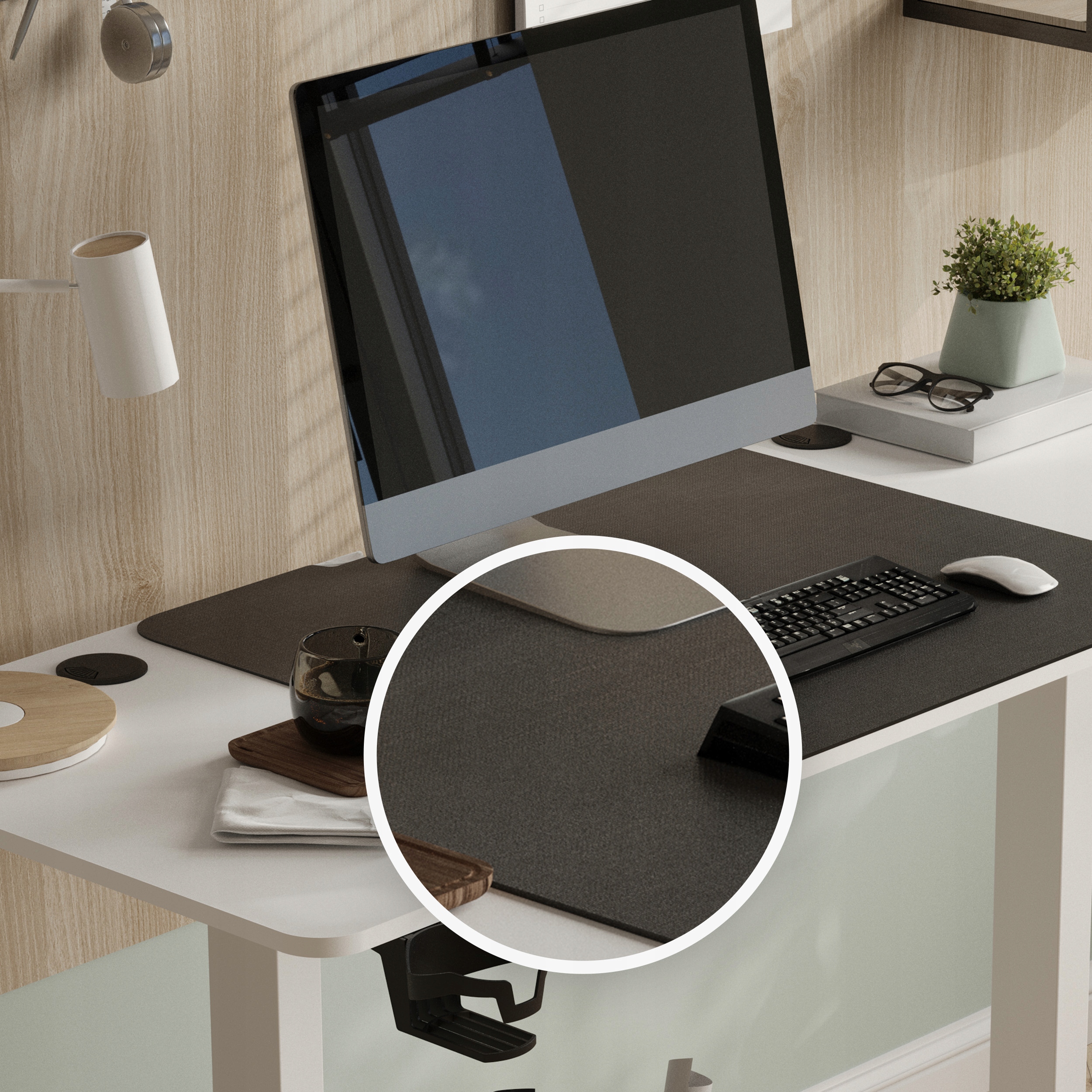 Большой коврик для мыши – надежное удобство. Во-первых, потому что это позволит вам свободно и беспрепятственно перемещать мышь, во-вторых, ваши предплечья получат мягкую опору и, в-третьих, вы обеспечите столешнице дополнительную защиту. Вам не придется искать модель, которая идеально подойдет к вашему стоячему столу, ведь в комплект входит подставка размера XXL (70 х 60 х 0,2 см).
