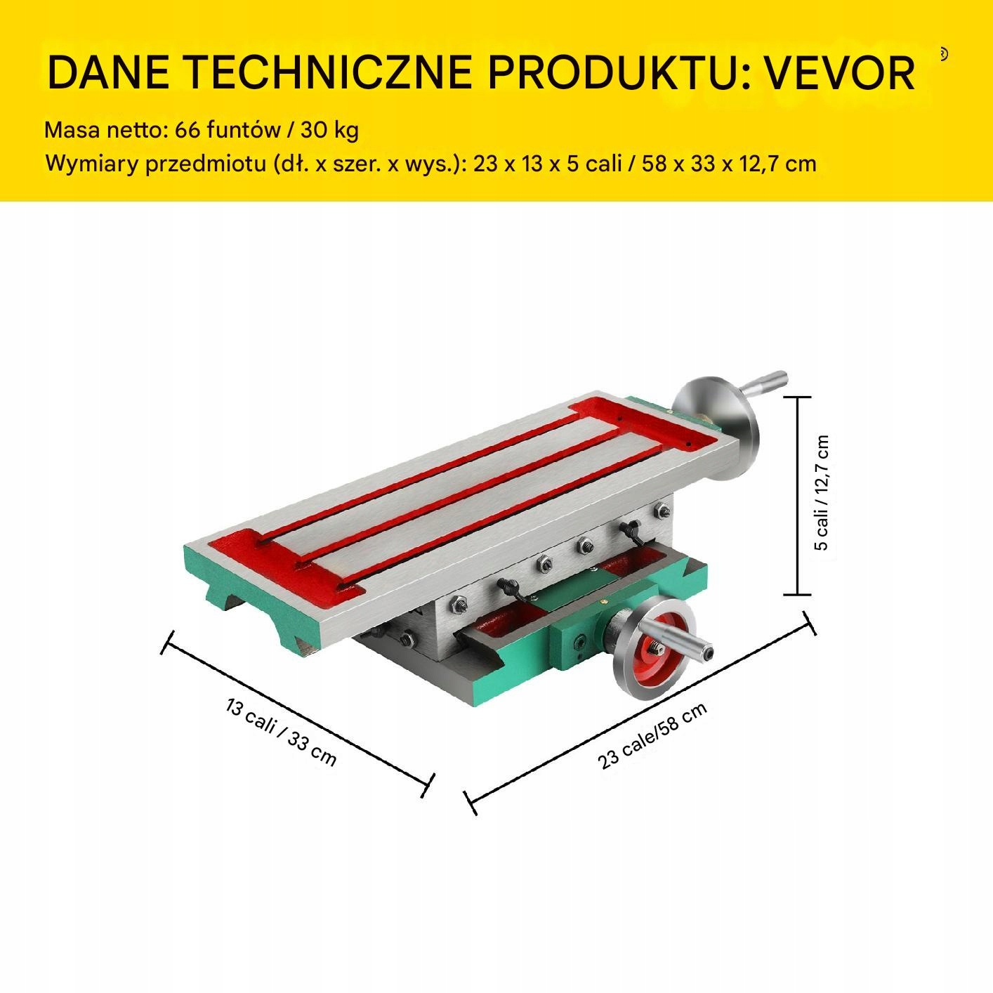 Вес нетто составляет 66 фунтов (30 кг), а размеры продукта — 23 x 13 x 5 дюймов (58 x 33 x 12,7 см). Идеально подходит для точной обработки в мастерской.