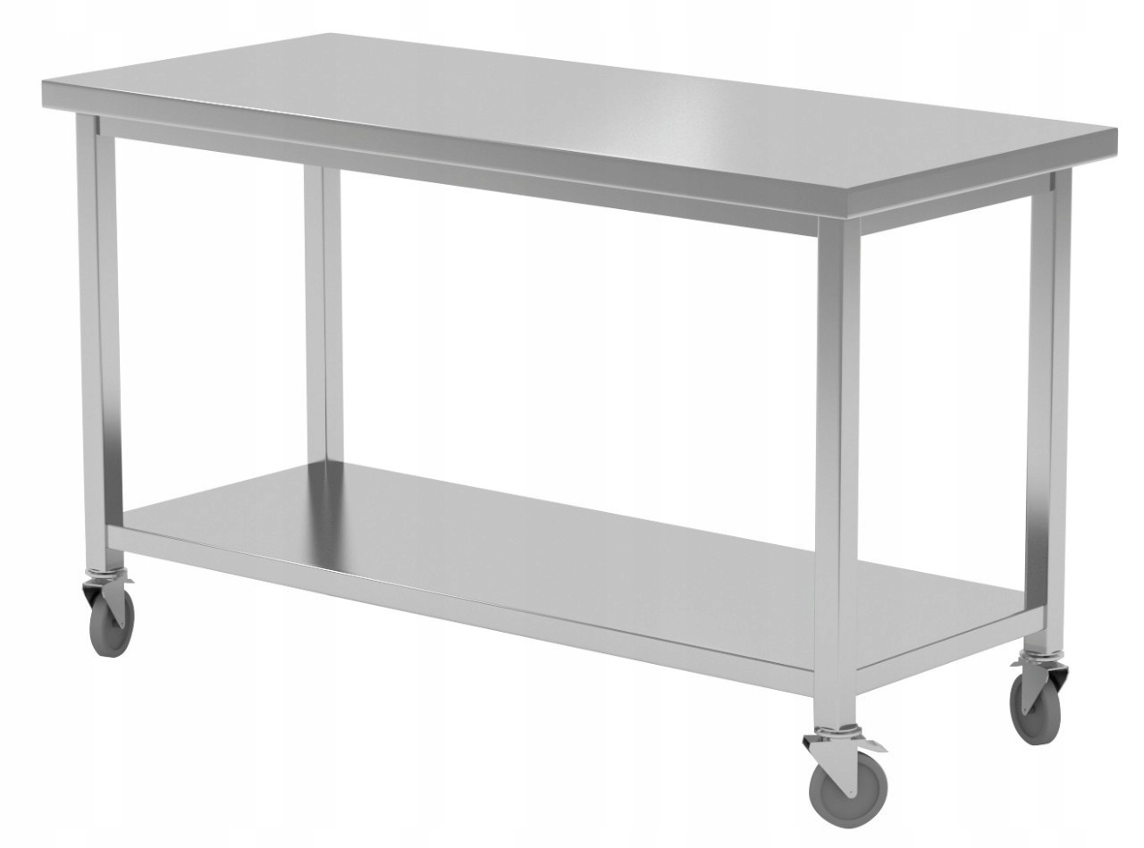 ✅ РАБОЧИЙ СТОЛ НЕРЖАВЕЮЩИЙ С КОЛЕСАМИ И ПОЛКОЙ 100x70 - POL-104107