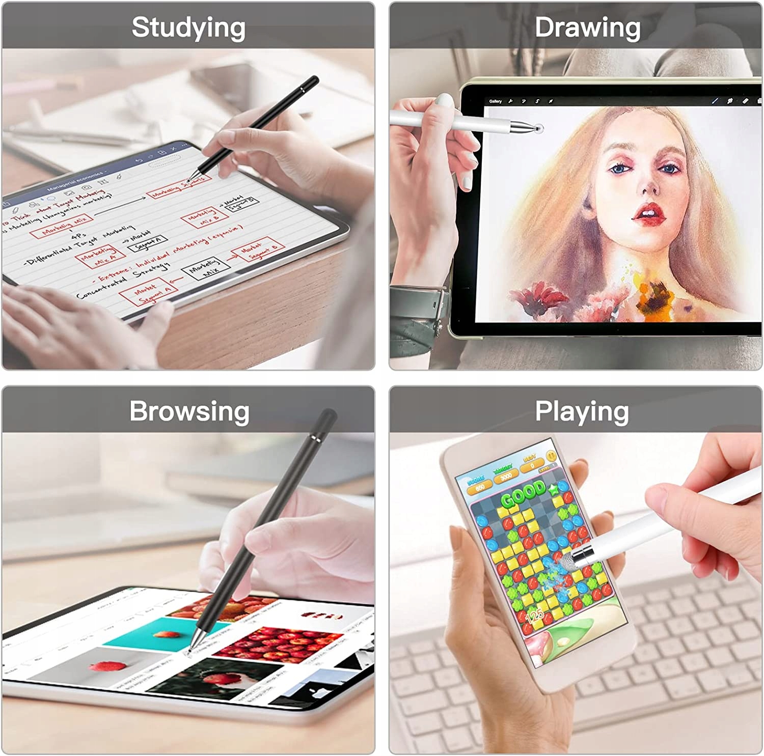 Стилус можно использовать разными способами. Создавать/рисовать диаграммы, рисовать, играть на телефоне или просматривать любимые веб-сайты на любом сенсорном устройстве еще никогда не было так просто