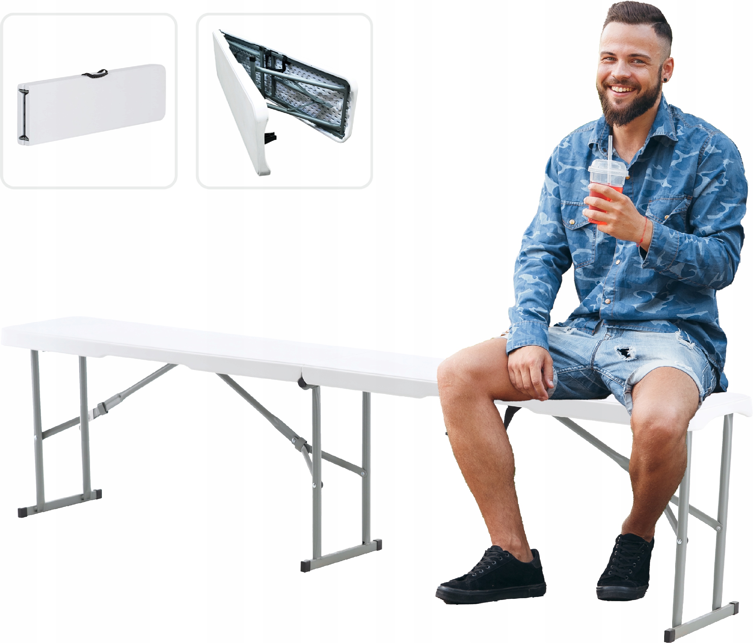 Идеально подходит для поездок, отдыха, пикников, кемпинга, продаж на дому. Изготовлен из высококачественных материалов (алюминий + ламинат), он чрезвычайно прочен и устойчив к любым погодным условиям, а его длина составляет 180 см! вместит самых близких вам людей. Сложив скамейку, вы получаете удобный для транспортировки чемодан.