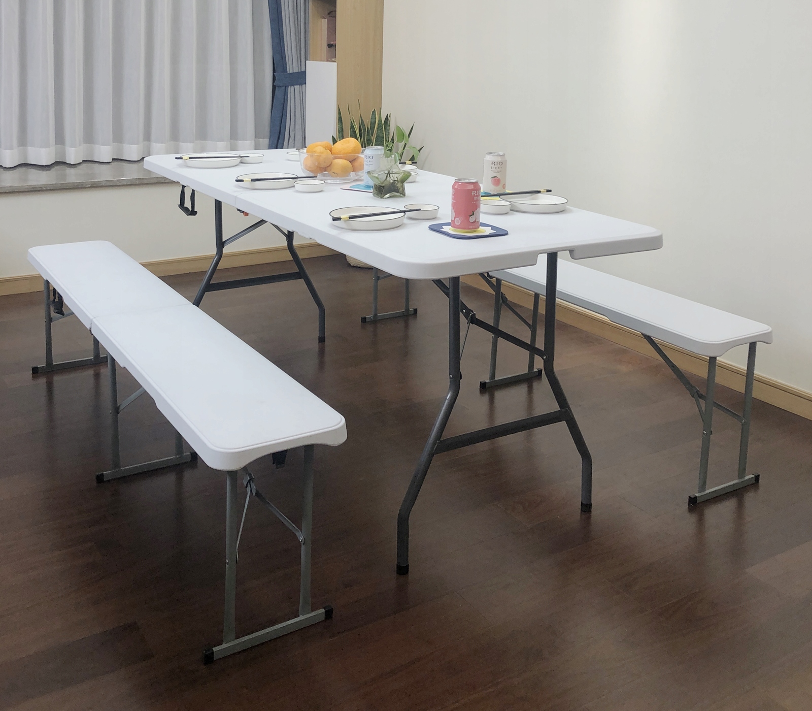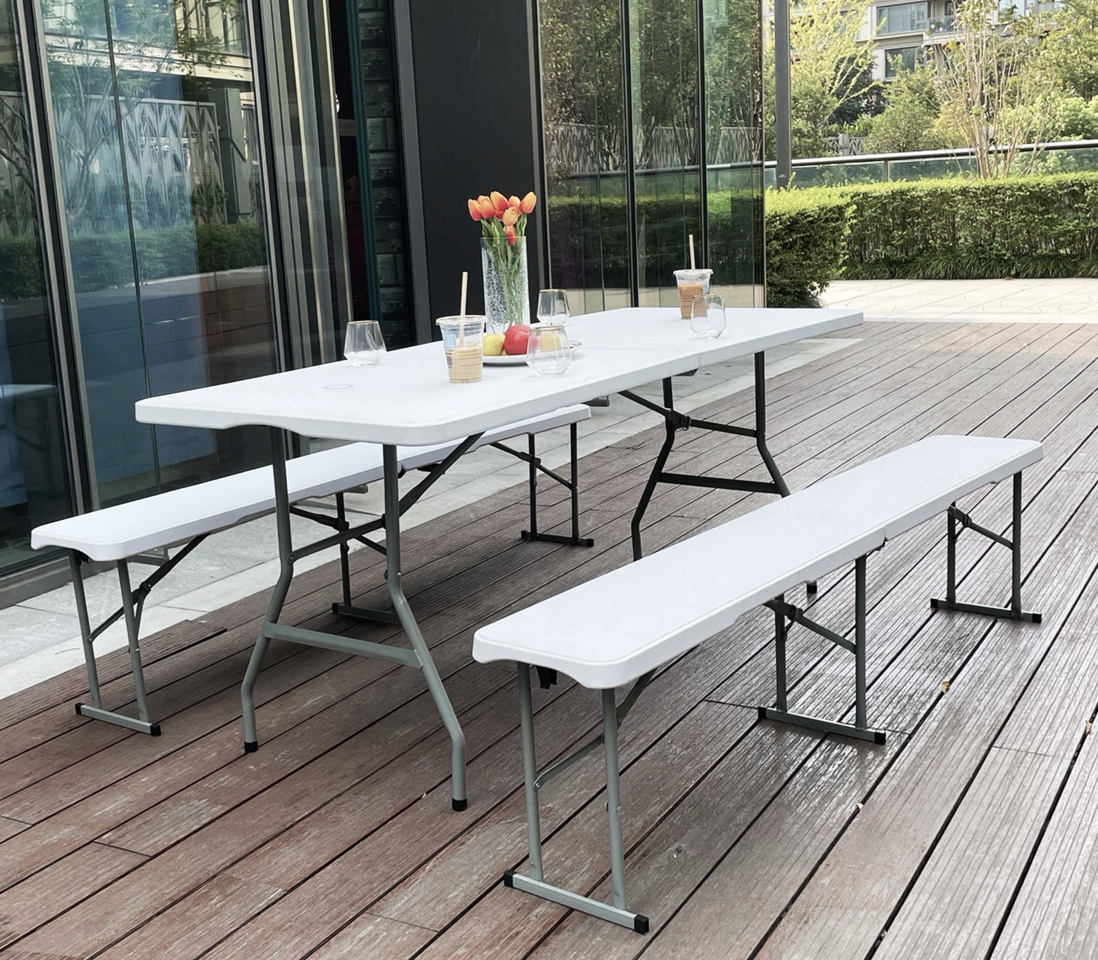 СТІЛ САДОВИЙ + 2 ЛАВКИ СКЛАДНИЙ КЕЙТЕРНГ РОЗШИРЮВАЛЬНИЙ НАБІР, БІЛИЙ